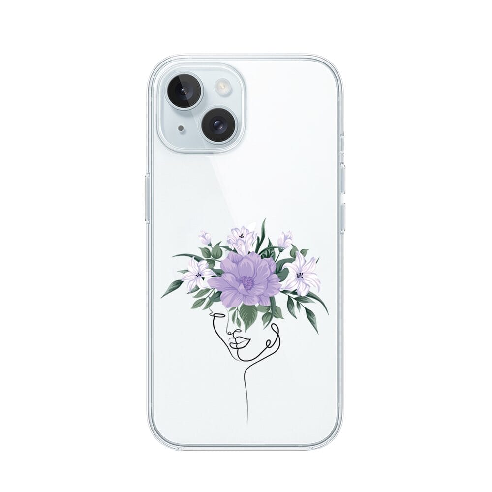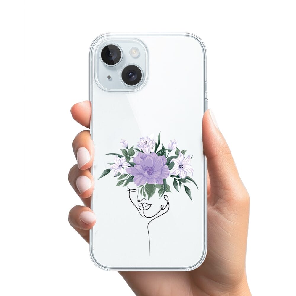 Etui do iPhone 15 Plus przeźroczyste, silikonowe Flexi, kobieta z kwiatami