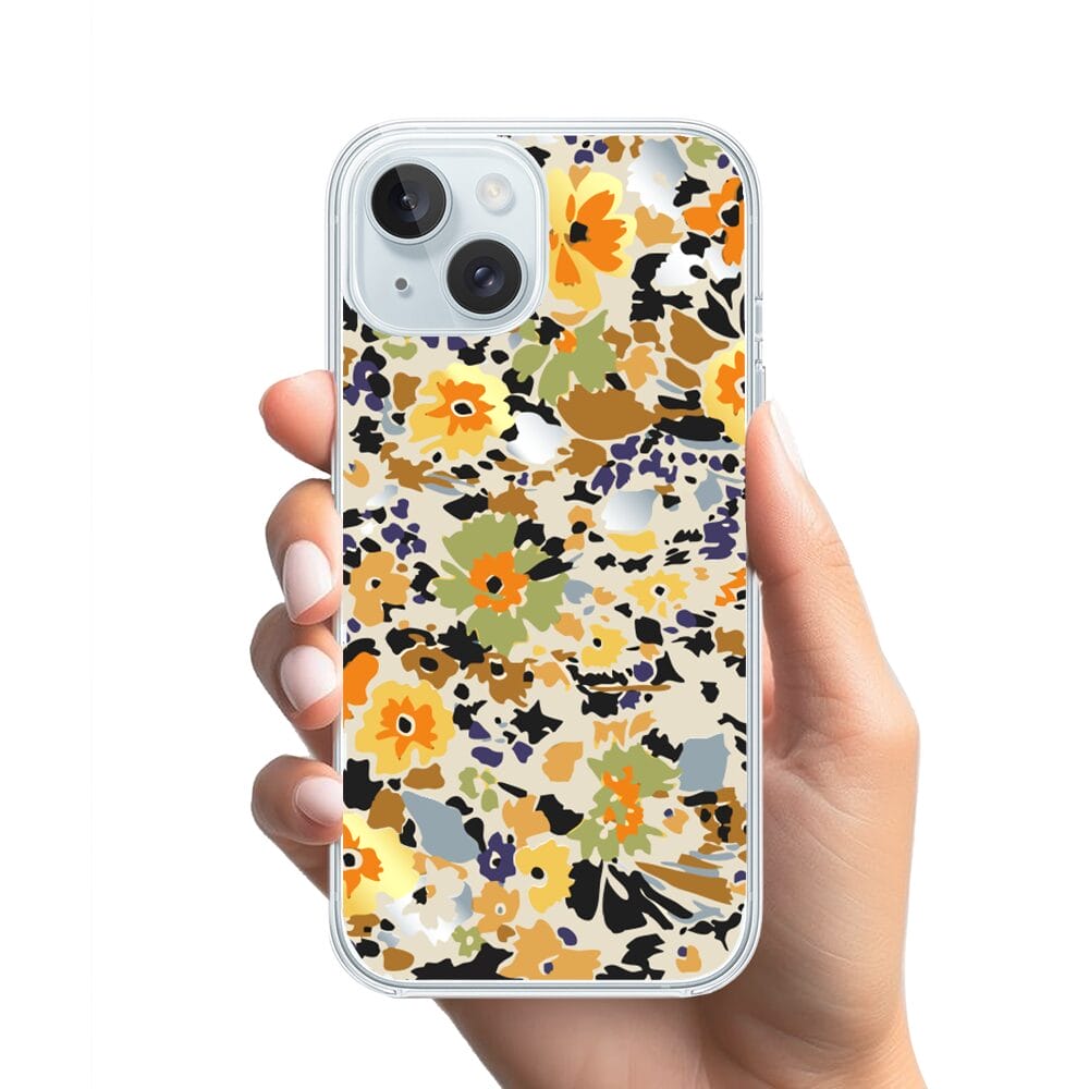 Etui do iPhone 15 Plus przeźroczyste, silikonowe Flexi, malowane kwiatki