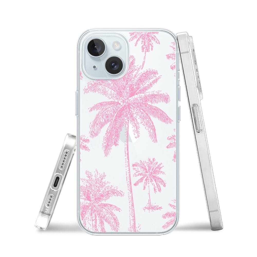 Etui do iPhone 15 Plus przeźroczyste, silikonowe Flexi, Mystic, Różowe palmy