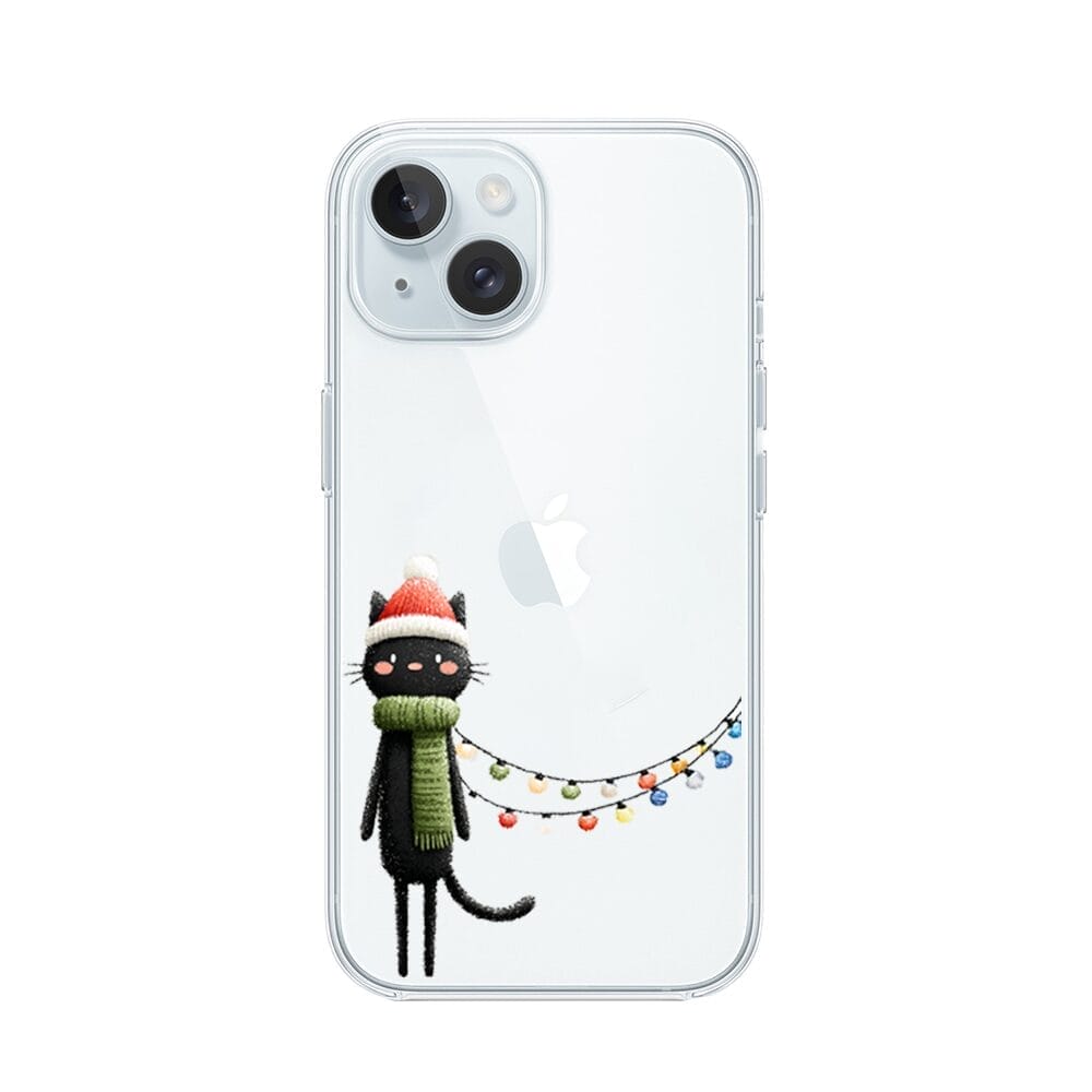 Etui do iPhone 15 Plus przeźroczyste, silikonowe Flexi, Przytulne święta, Kot przebrany za elfa