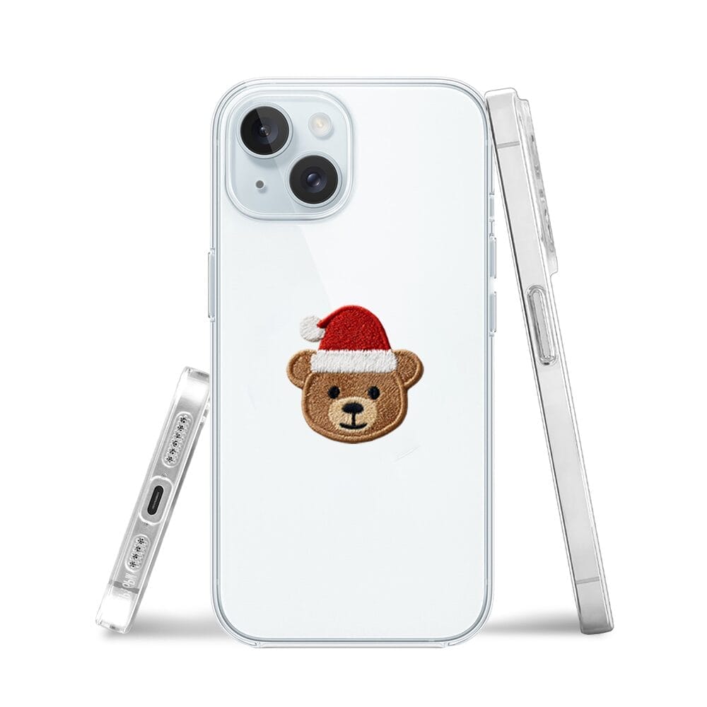 Etui do iPhone 15 Plus przeźroczyste, silikonowe Flexi, Przytulne święta, Miś mikołajek