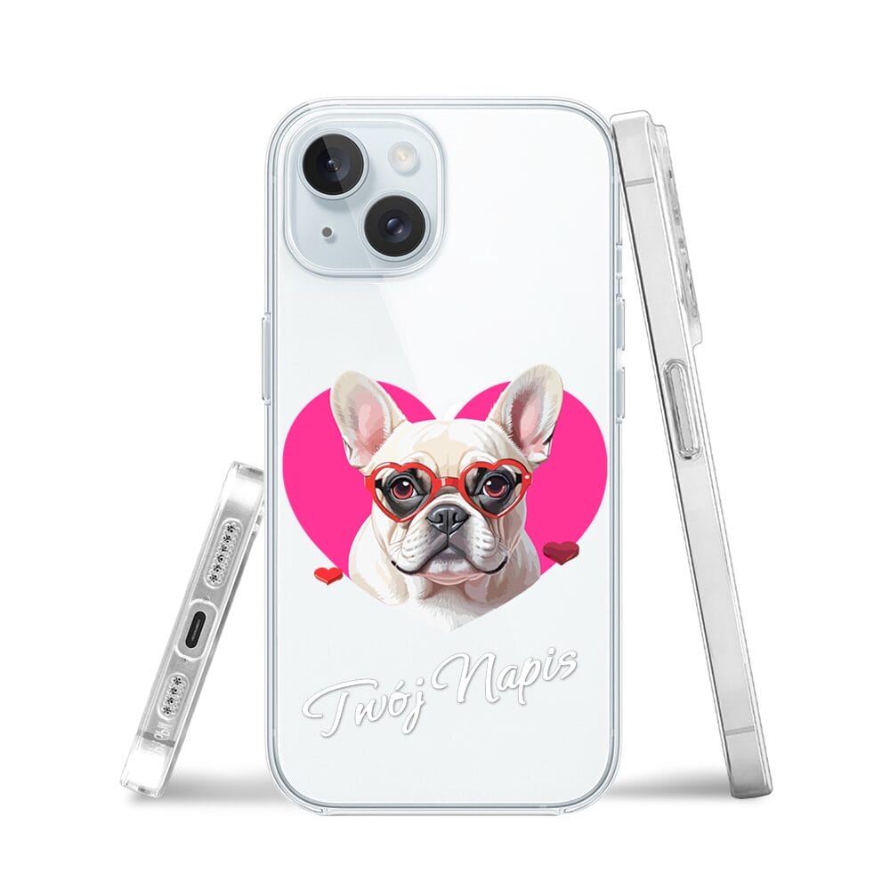 Etui do iPhone 15 Plus przeźroczyste, silikonowe Flexi, Puppy Love, pies rasy Buldog Francuski