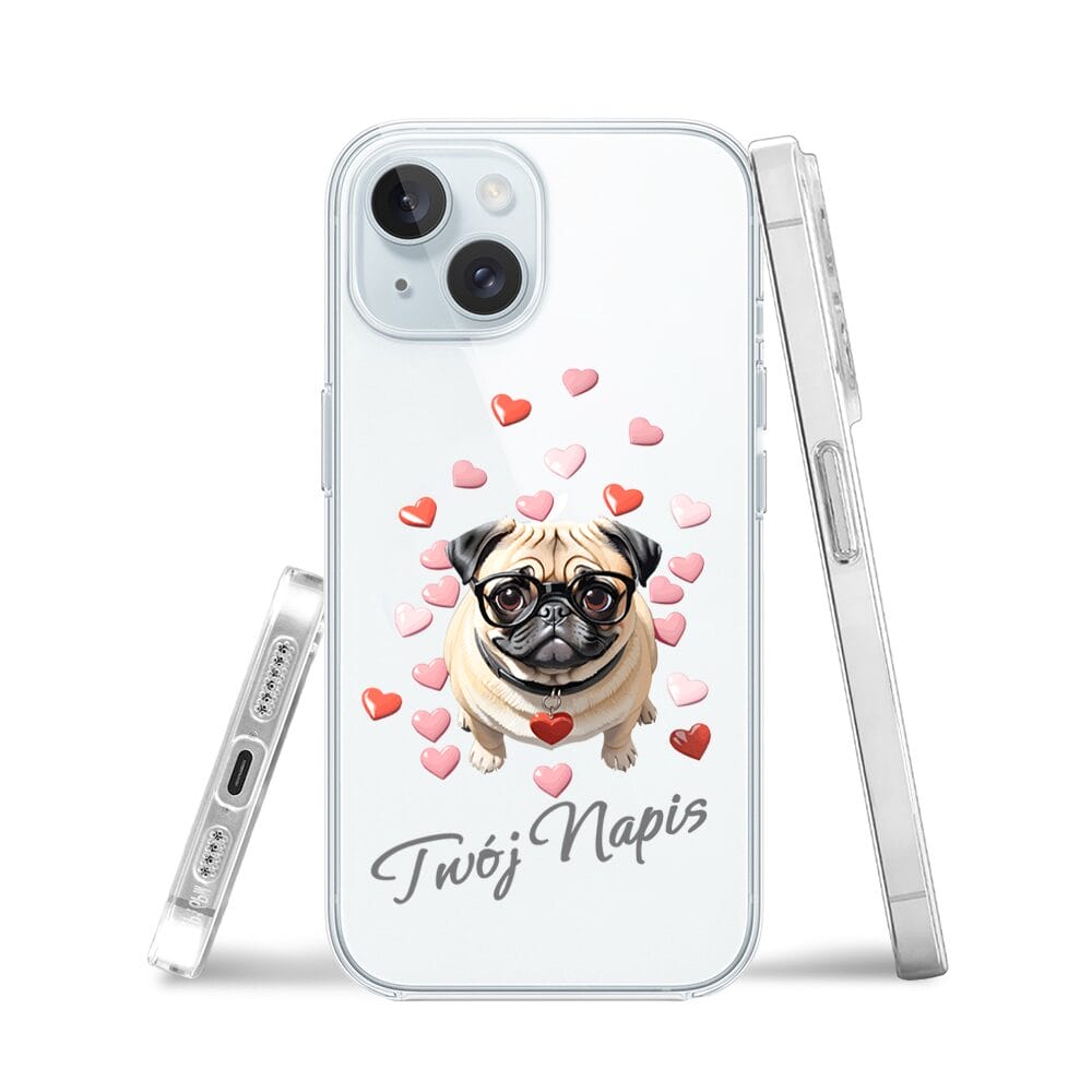 Etui do iPhone 15 Plus przeźroczyste, silikonowe Flexi, Puppy Love, pies rasy Mops