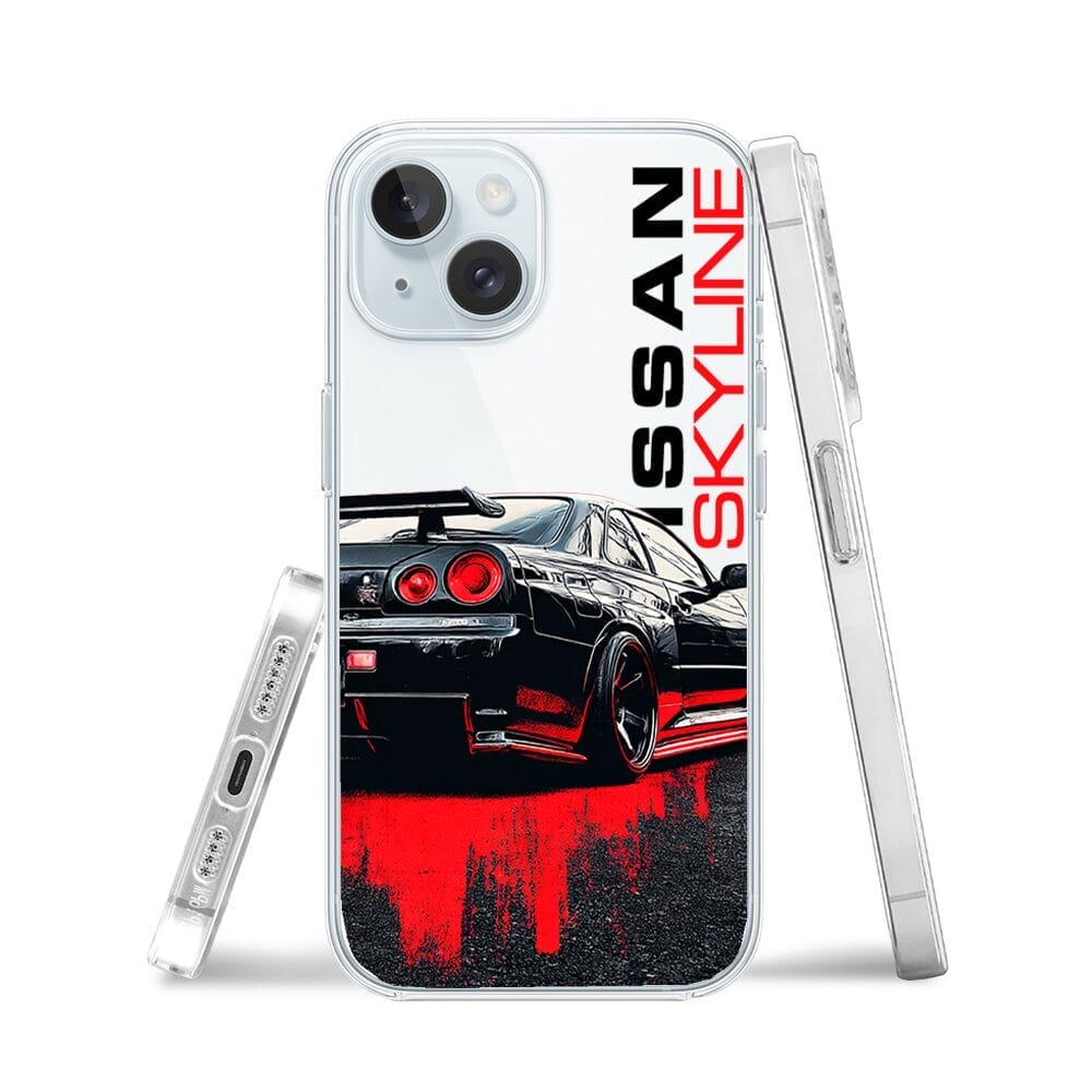 Etui do iPhone 15 Plus przeźroczyste, silikonowe Flexi, Szybkie Auta, czarny Skyline