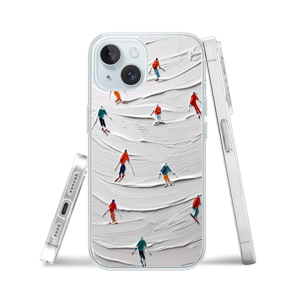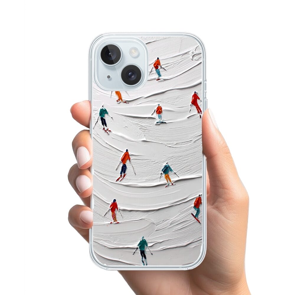 Etui do iPhone 15 Plus przeźroczyste, silikonowe Flexi, Zimowa magia, Narciarski obraz