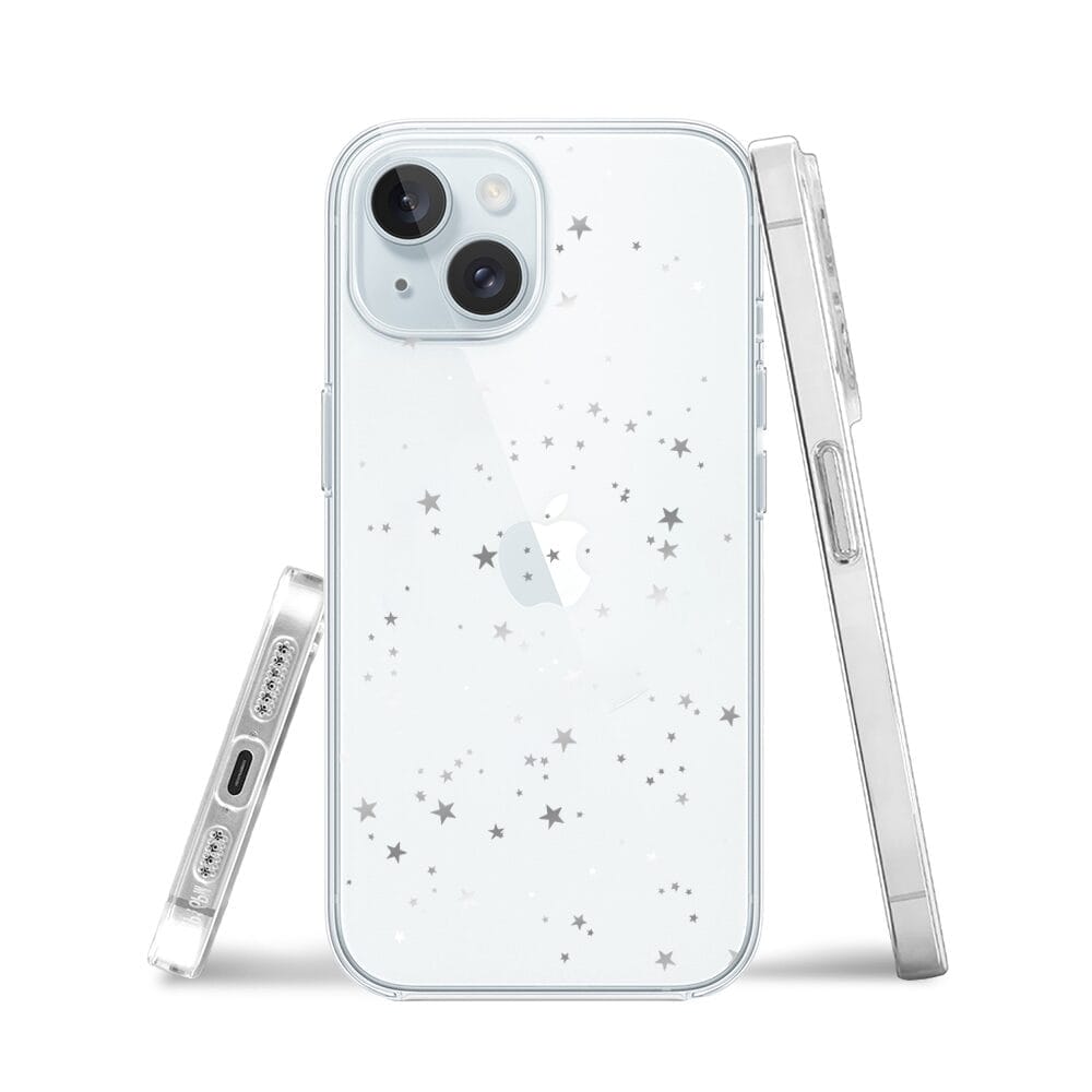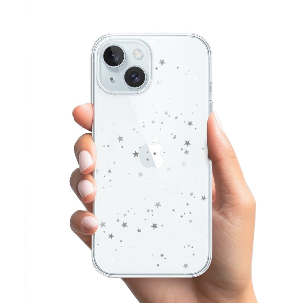 Etui do iPhone 15 Plus przeźroczyste, silikonowe Flexi, Zimowa magia, Szampańskie gwiazdki