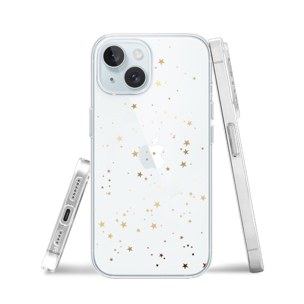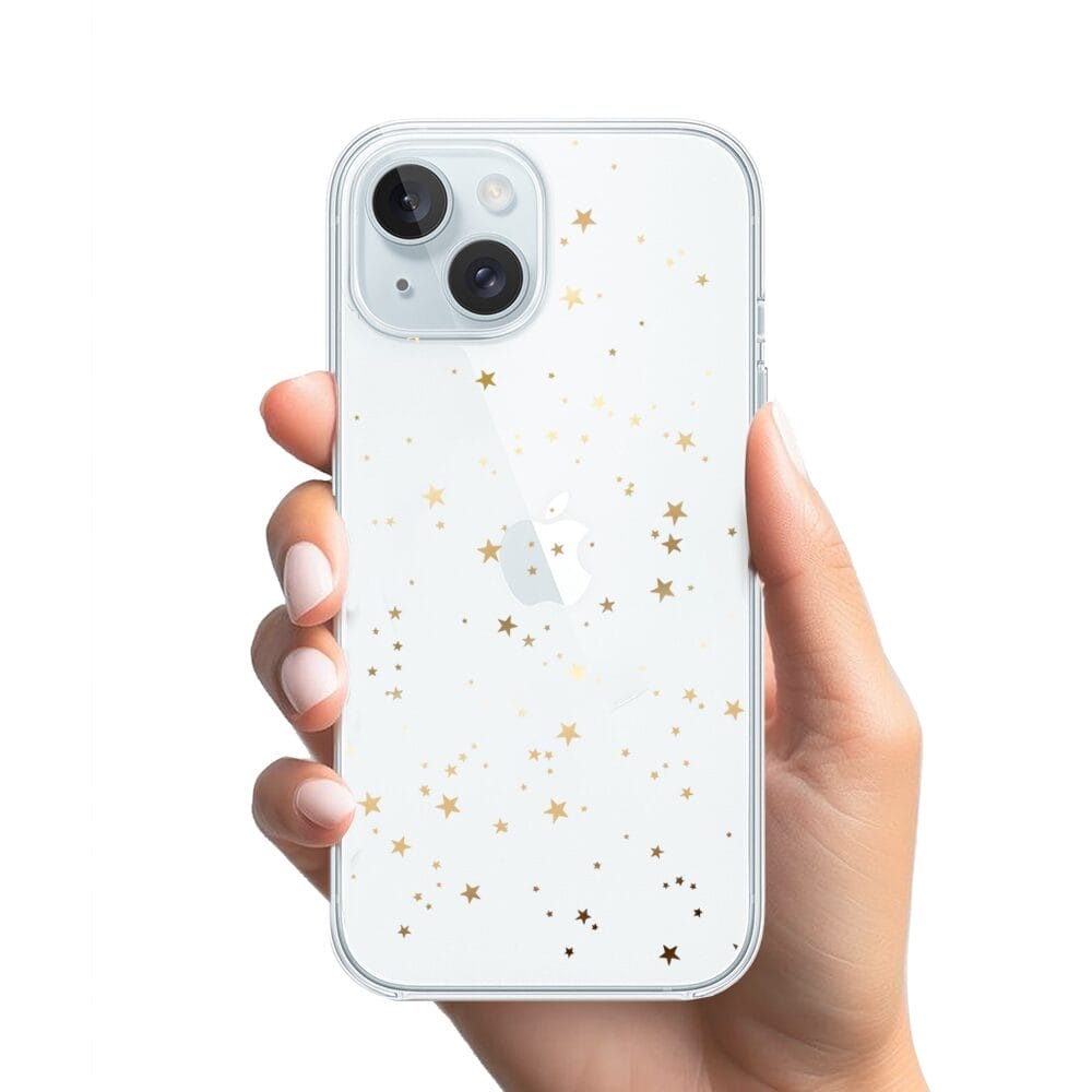 Etui do iPhone 15 Plus przeźroczyste, silikonowe Flexi, Zimowa magia, Złote gwiazdki