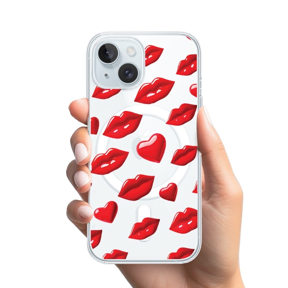 Etui do iPhone 15 Plus z MagSafe przeźroczyste, silikonowe Flexi, czerwone usta