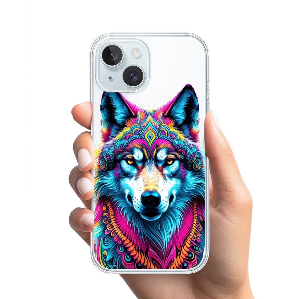 Etui do iPhone 15 Plus z MagSafe przeźroczyste, silikonowe Flexi, Dzika Mandala, Wilk