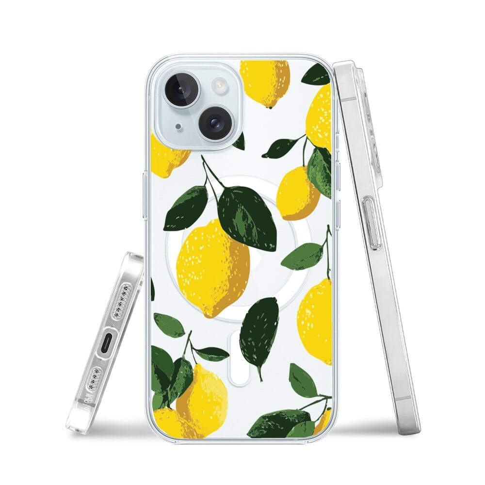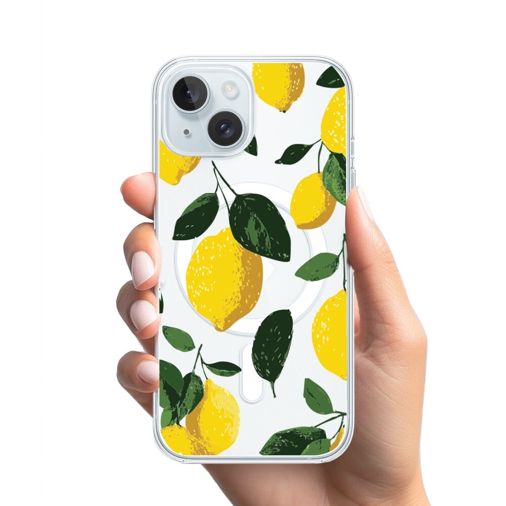Etui do iPhone 15 Plus z MagSafe przeźroczyste, silikonowe Flexi, Italian Summer, Cytrynowe