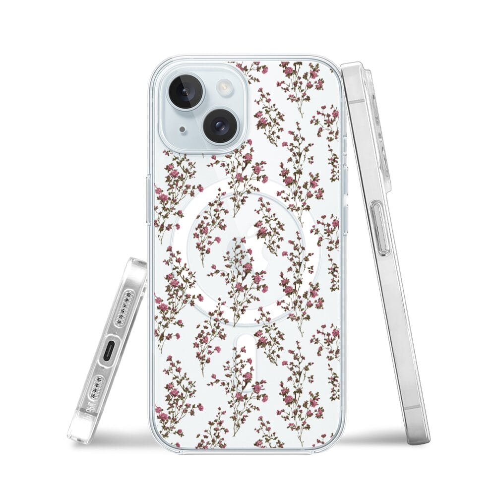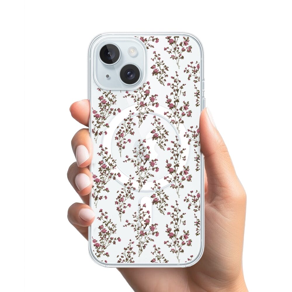 Etui do iPhone 15 Plus z MagSafe przeźroczyste, silikonowe Flexi, Mini Patterns, Różyczki