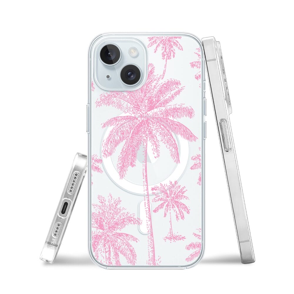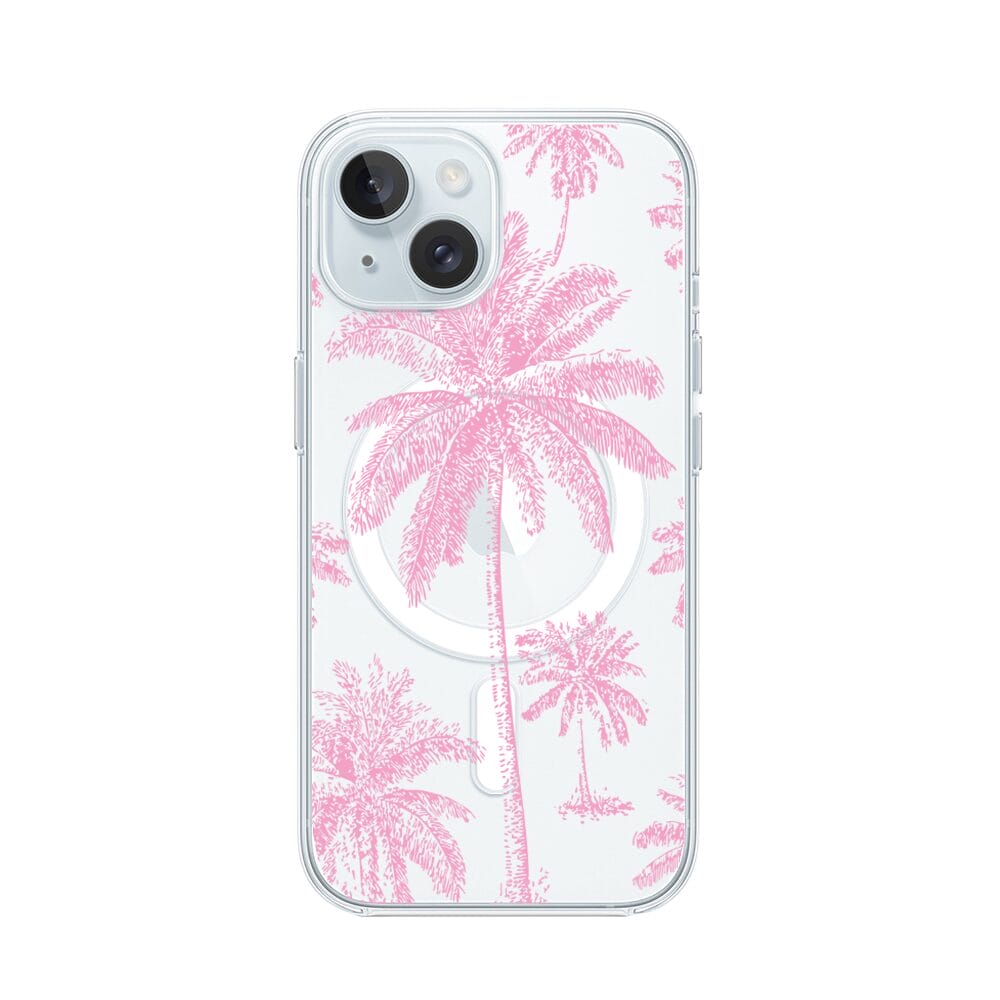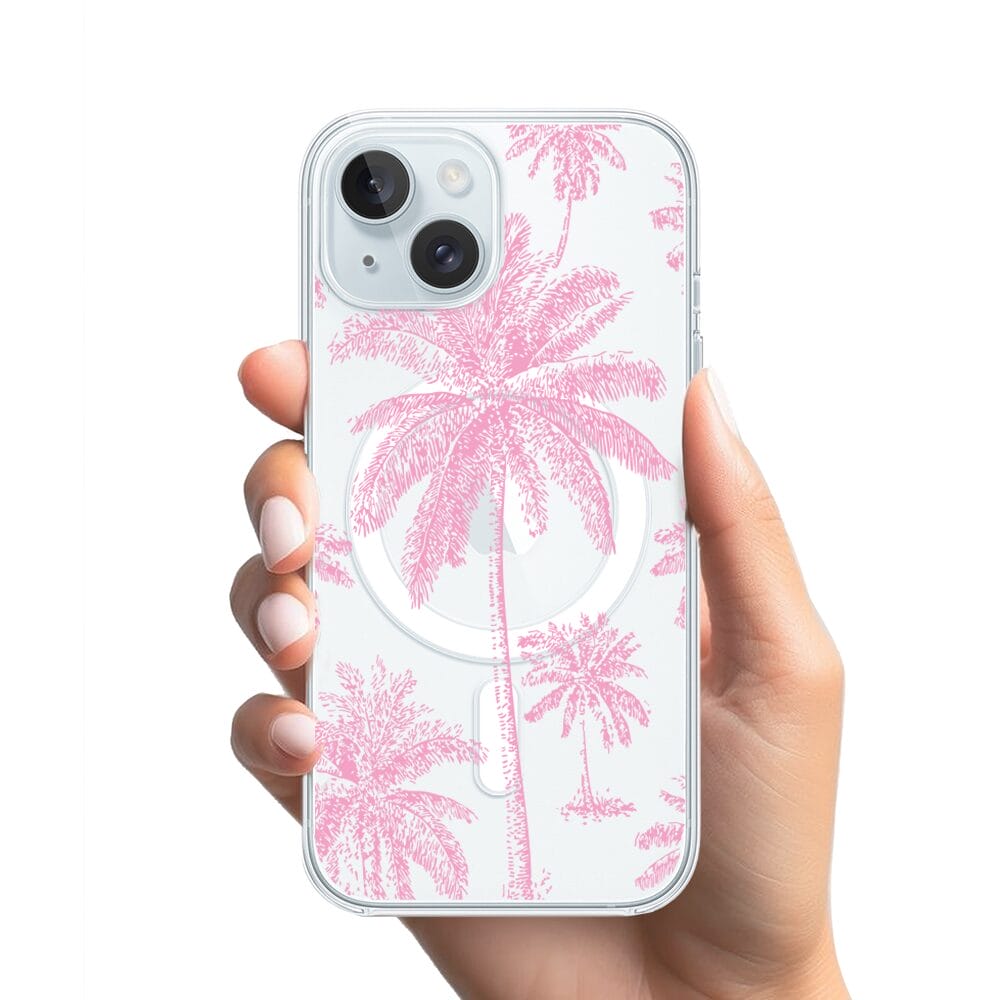 Etui do iPhone 15 Plus z MagSafe przeźroczyste, silikonowe Flexi, Mystic, Różowe palmy