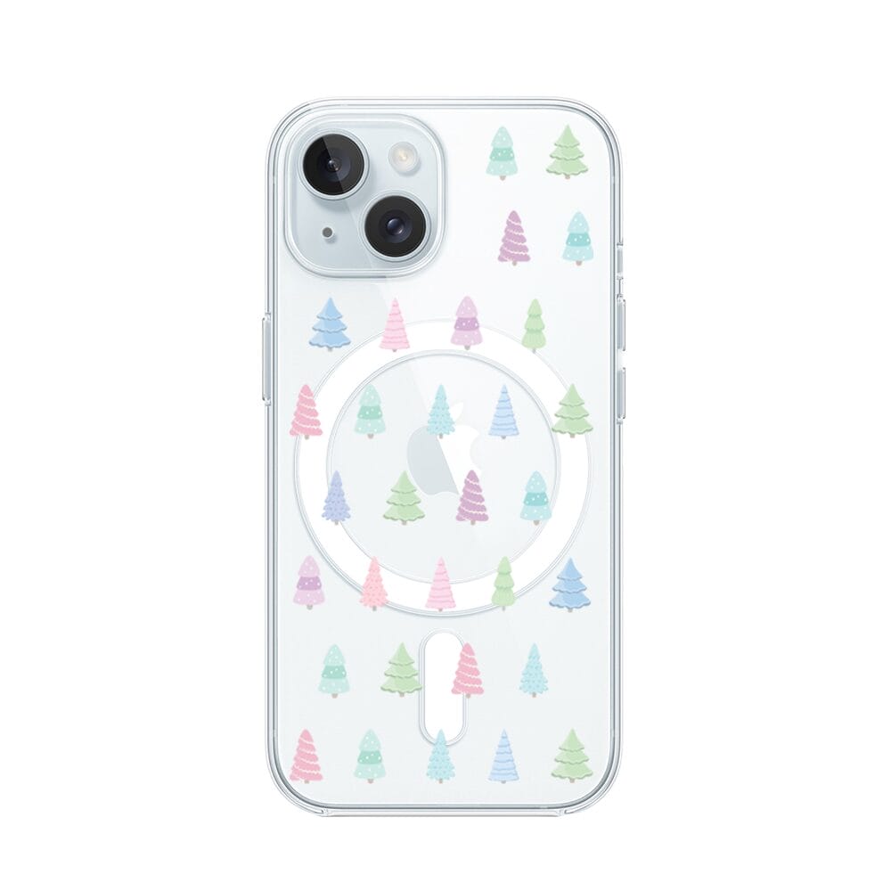 Etui do iPhone 15 Plus z MagSafe przeźroczyste, silikonowe Flexi, Pastelowe choinki