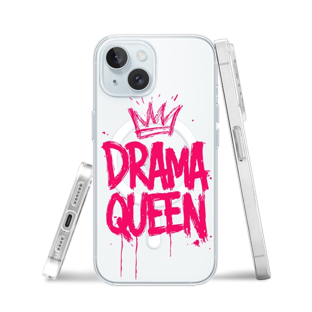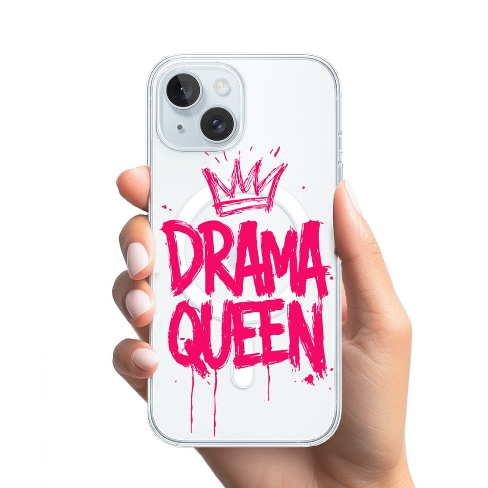 Etui do iPhone 15 Plus z MagSafe przeźroczyste, silikonowe Flexi, Positive Vibes, Drama Queen
