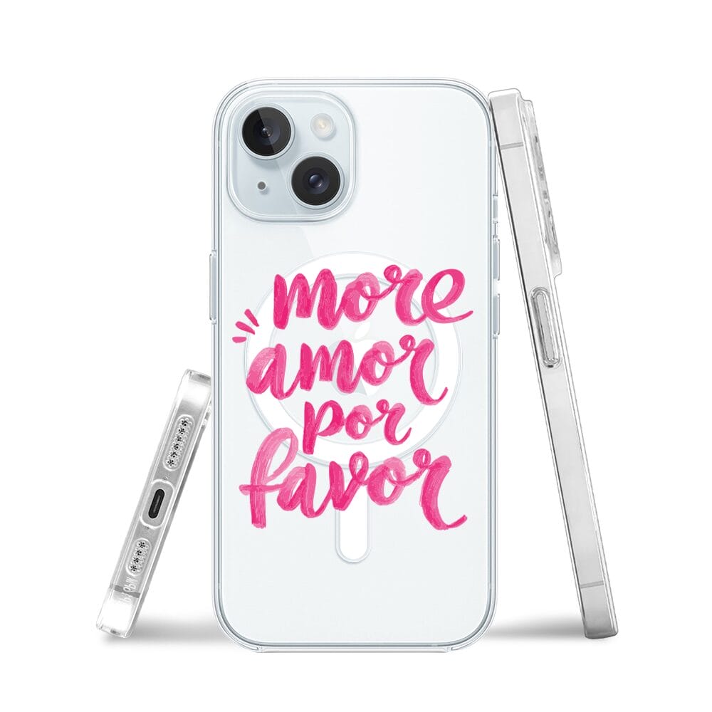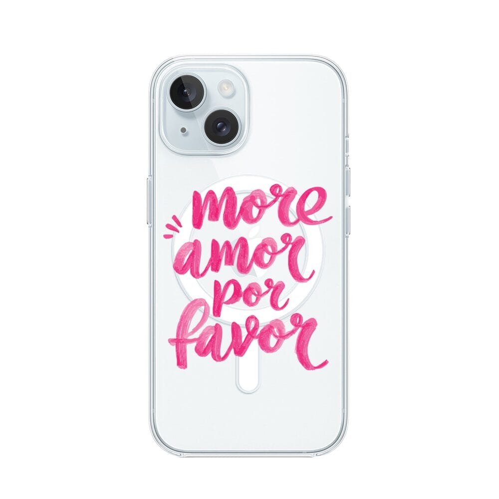 Etui do iPhone 15 Plus z MagSafe przeźroczyste, silikonowe Flexi, Positive Vibes, More amore per favore