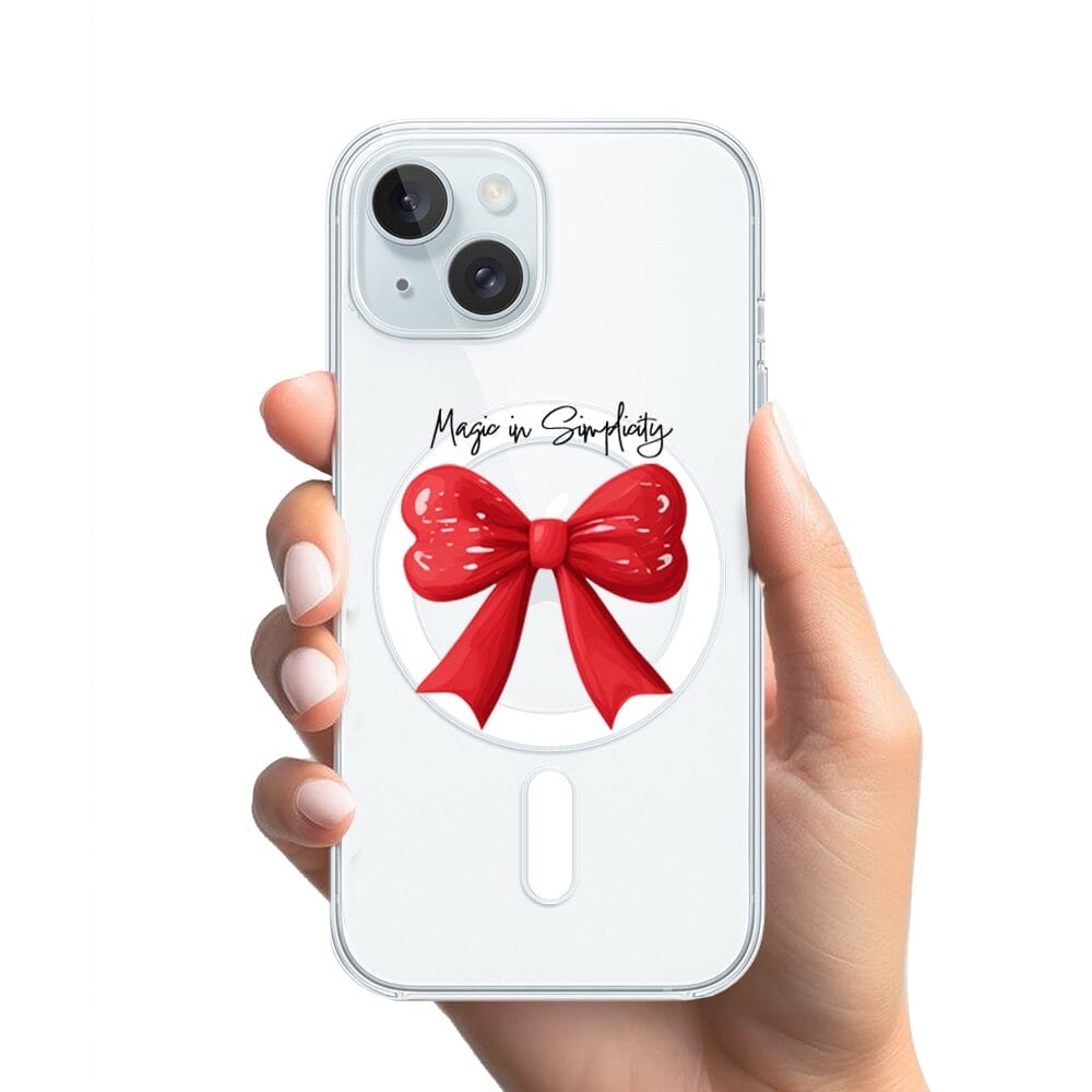 Etui do iPhone 15 Plus z MagSafe przeźroczyste, silikonowe Flexi, Przytulne święta, Czerwona kokarda