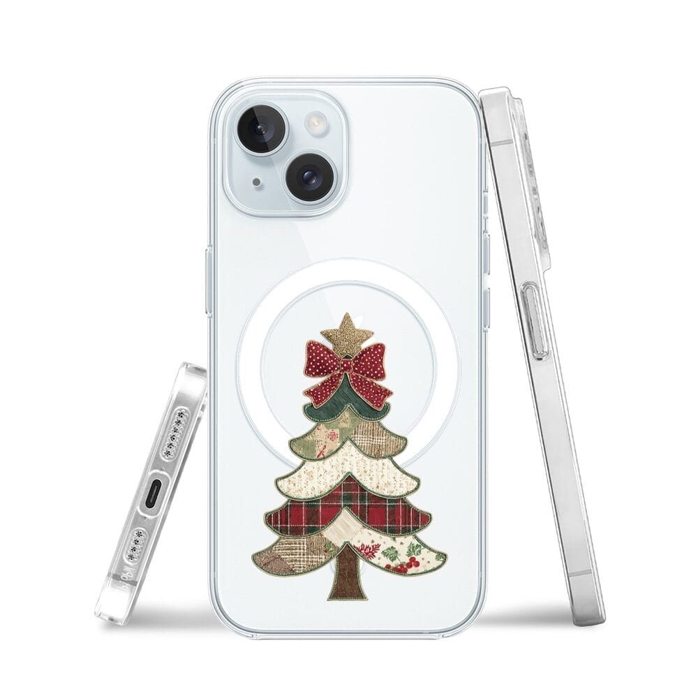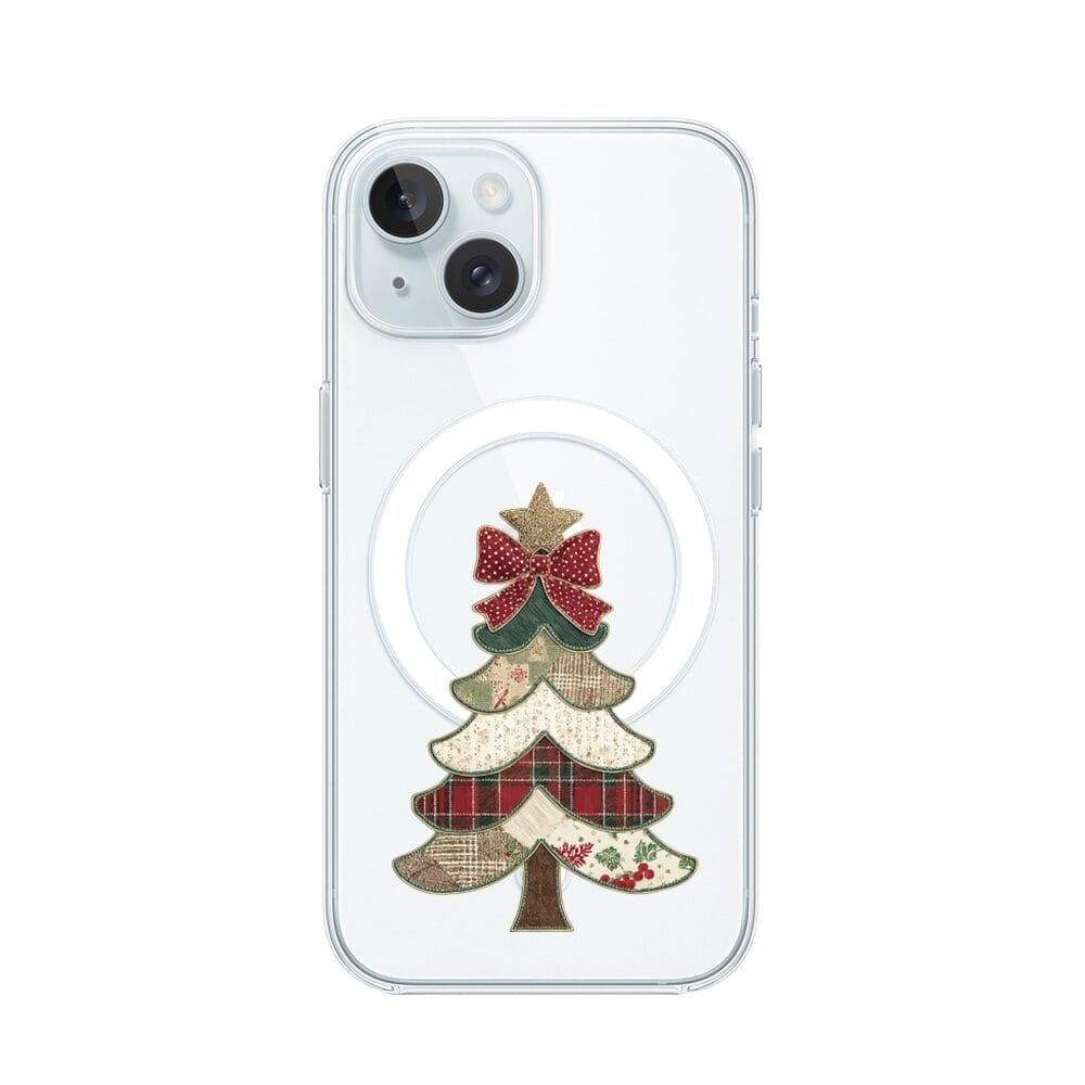 Etui do iPhone 15 Plus z MagSafe przeźroczyste, silikonowe Flexi, Przytulne święta, Kraciasta choinka