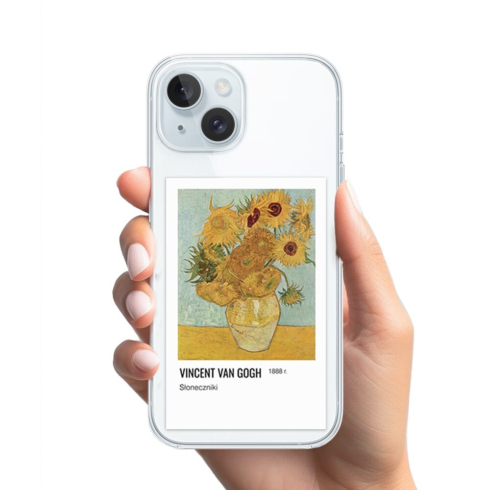 Etui do iPhone 15 Plus z MagSafe przeźroczyste, silikonowe Flexi, słoneczniki