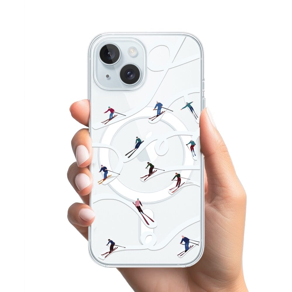 Etui do iPhone 15 Plus z MagSafe przeźroczyste, silikonowe Flexi, Zimowa magia, Narciarskie wiraże