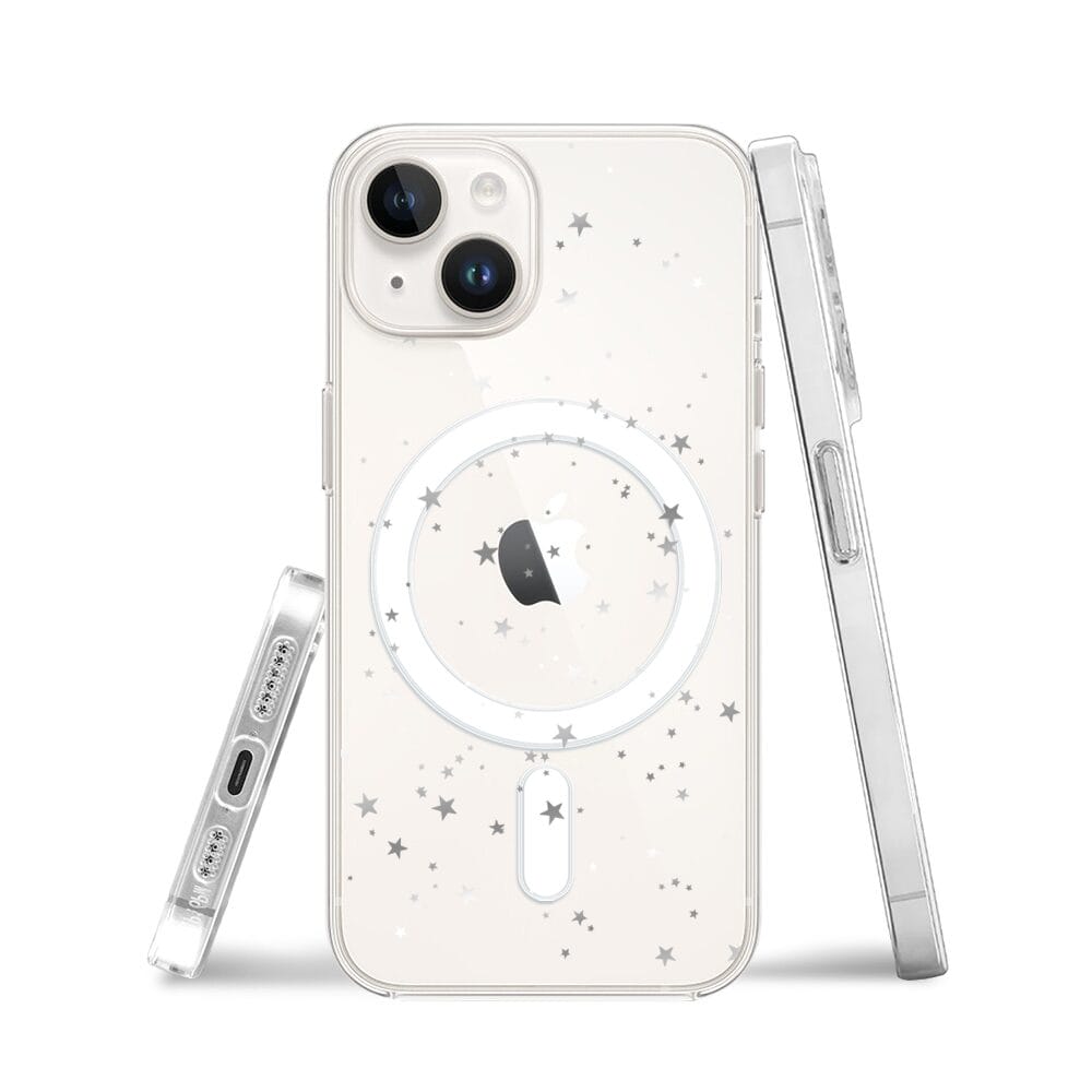 Etui do iPhone 15 Plus z MagSafe przeźroczyste, silikonowe Flexi, Zimowa magia, Szampańskie gwiazdki