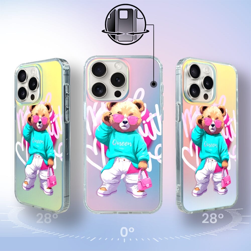 Etui do iPhone 15 Pro IBIZU California Sunset, zmieniające kolor, Pink Queen, stylowy miś