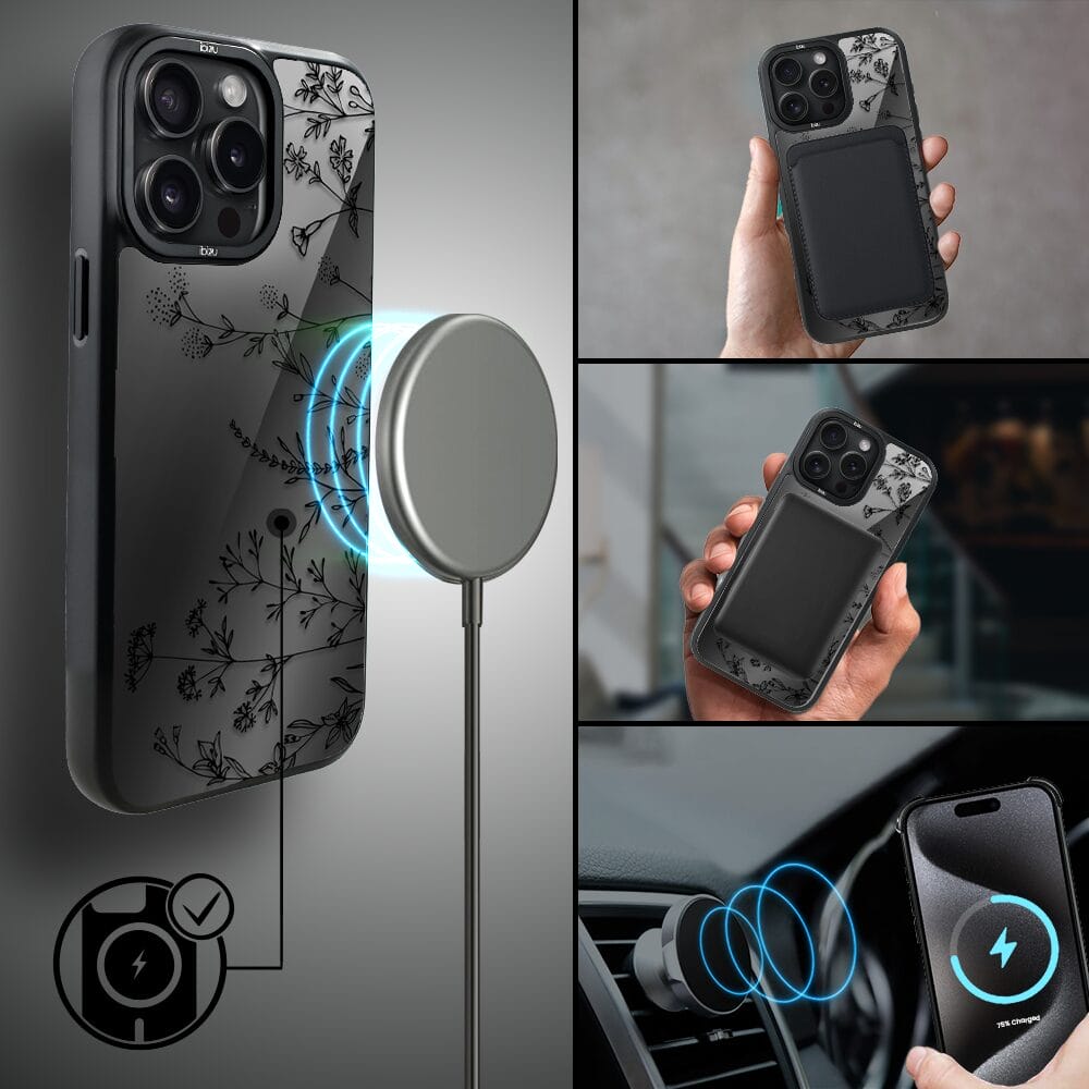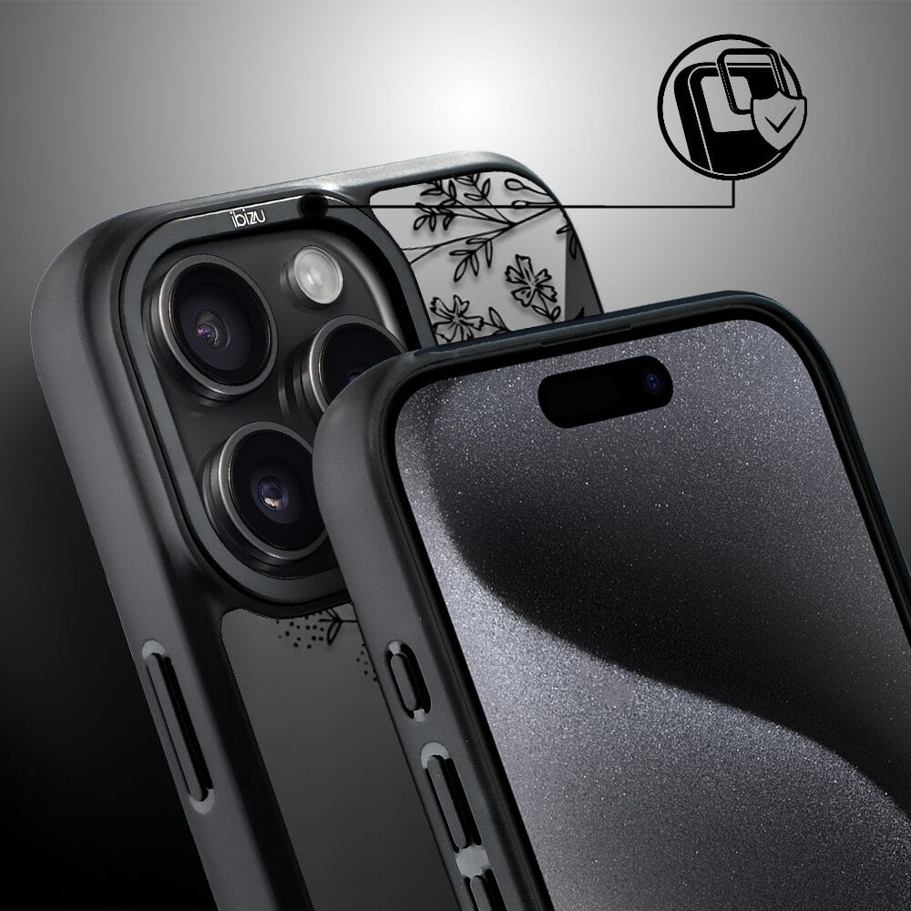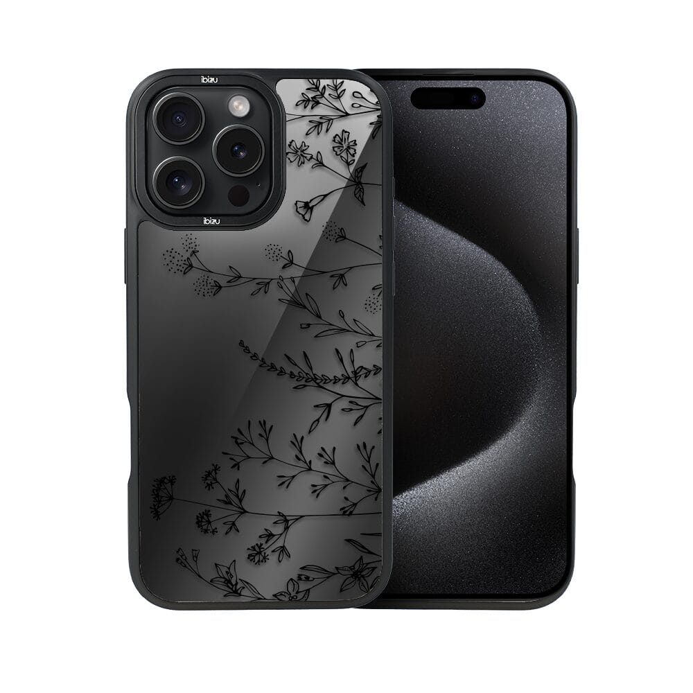 Etui do iPhone 15 Pro IBIZU DropGuard Matt z MagSafe, Midnight, Dotyk kwiatów