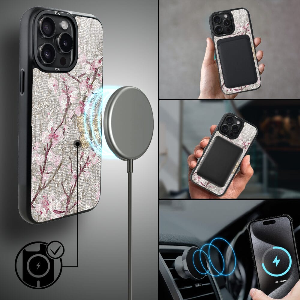 Etui do iPhone 15 Pro IBIZU DropGuard Matt z MagSafe, Modern Classics, Mozaika kwitnącej wiśni
