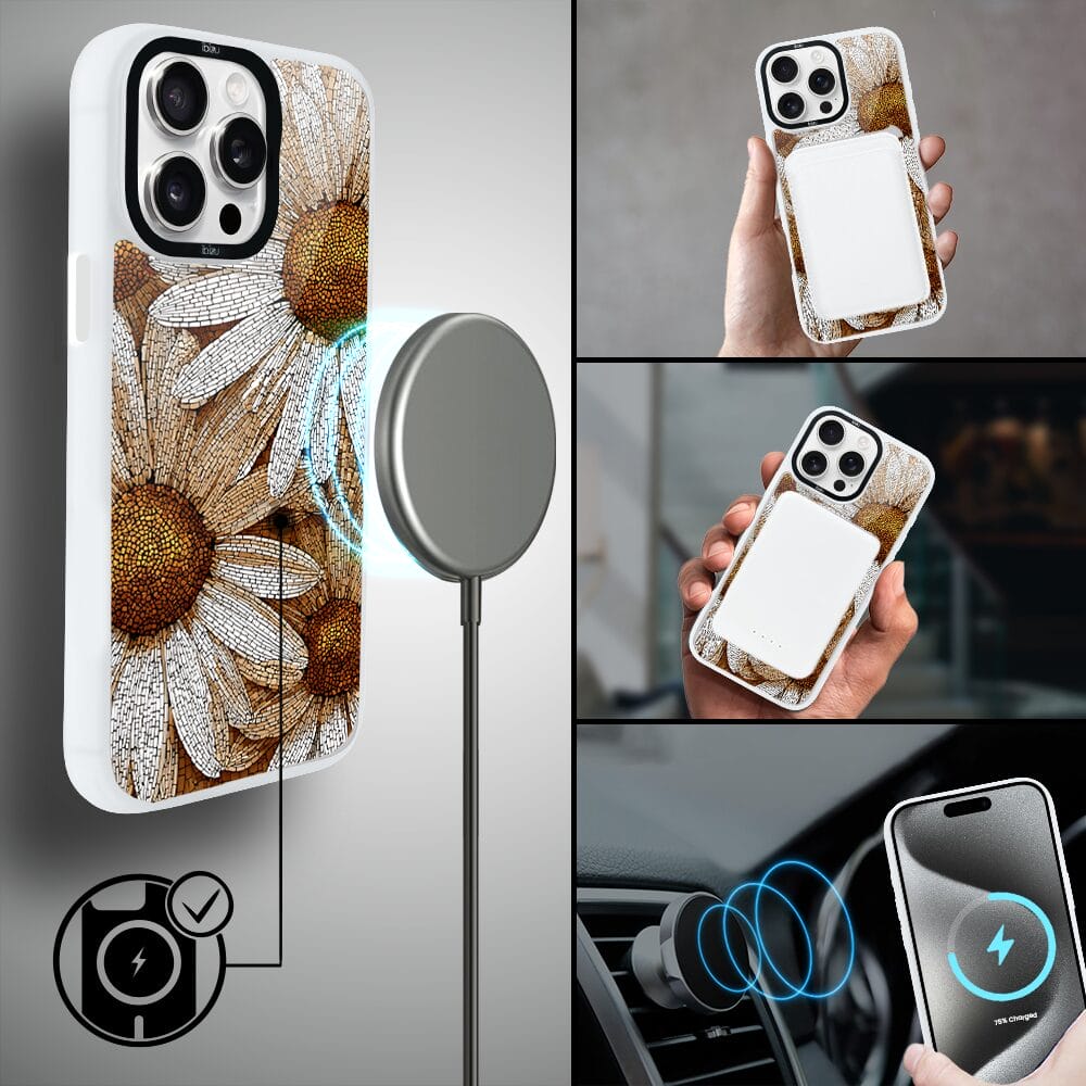 Etui do iPhone 15 Pro IBIZU DropGuard Matt z MagSafe, Modern Classics, Mozaika rumianków