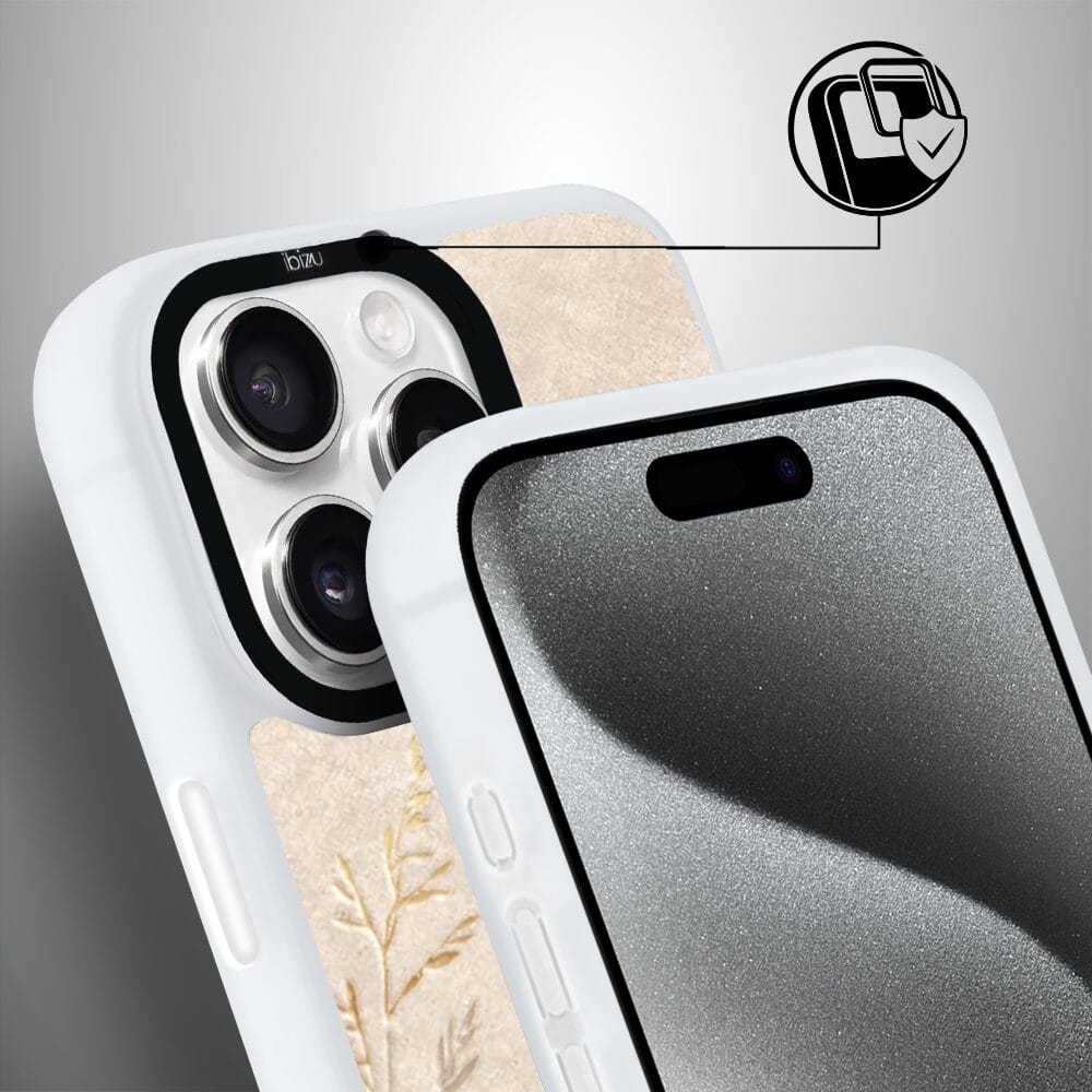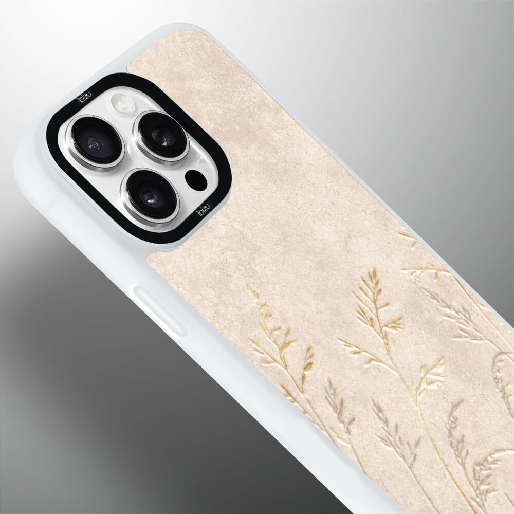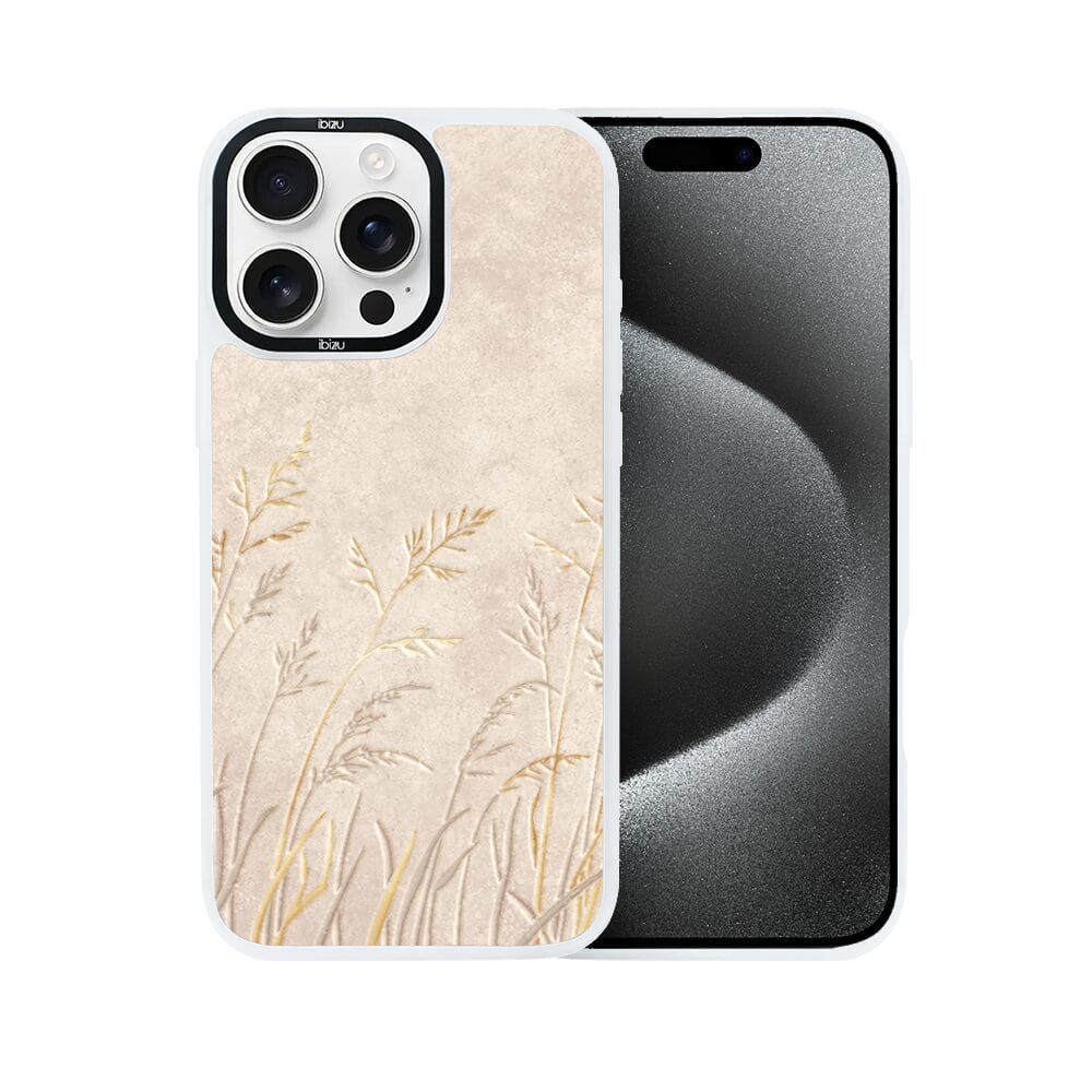 Etui do iPhone 15 Pro IBIZU DropGuard Matt z MagSafe, Relief Garden, Kłosy z piaskowca, białe
