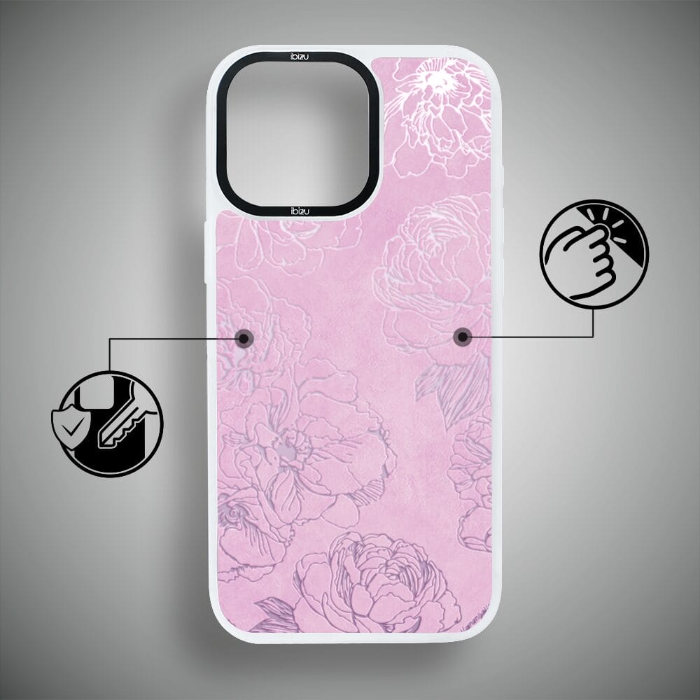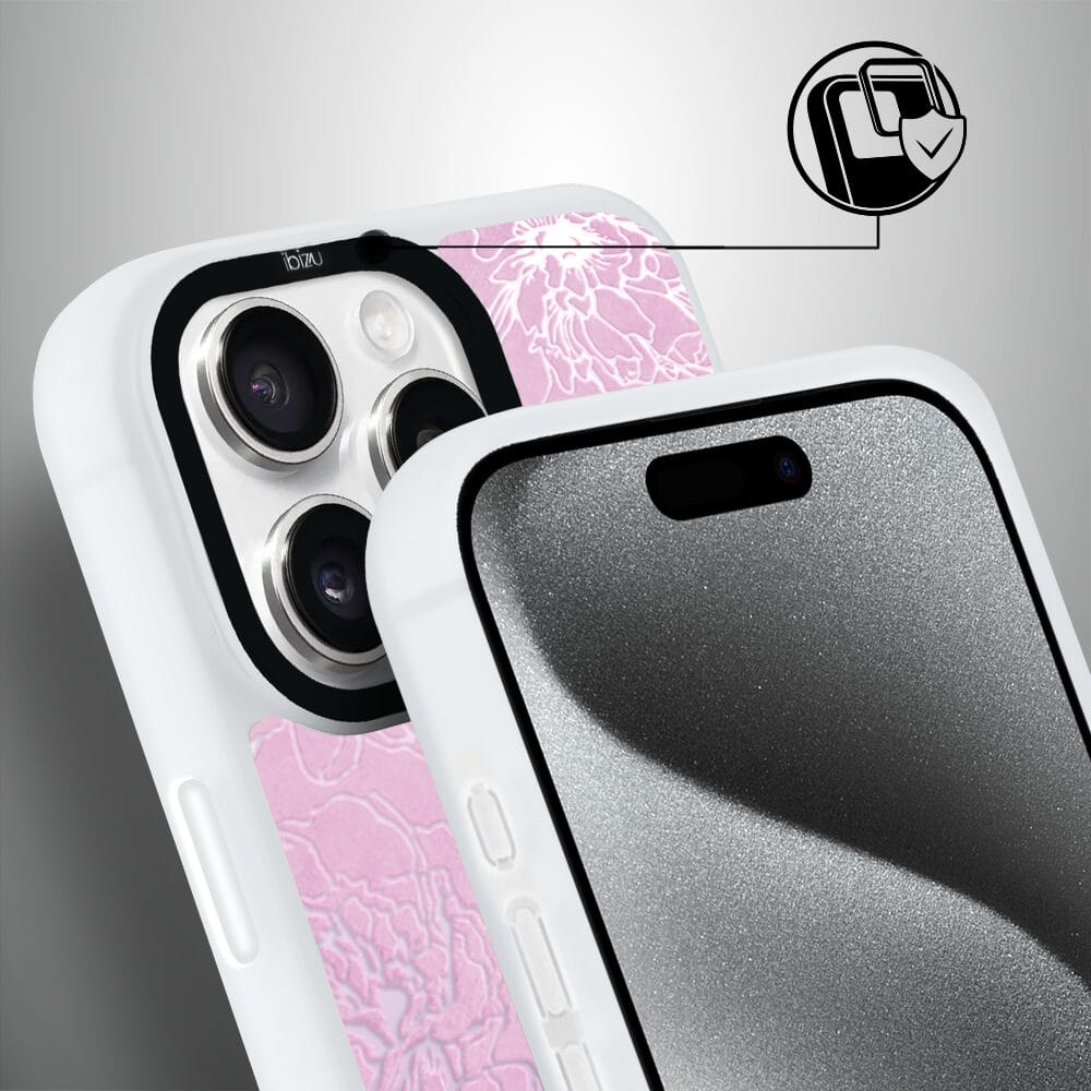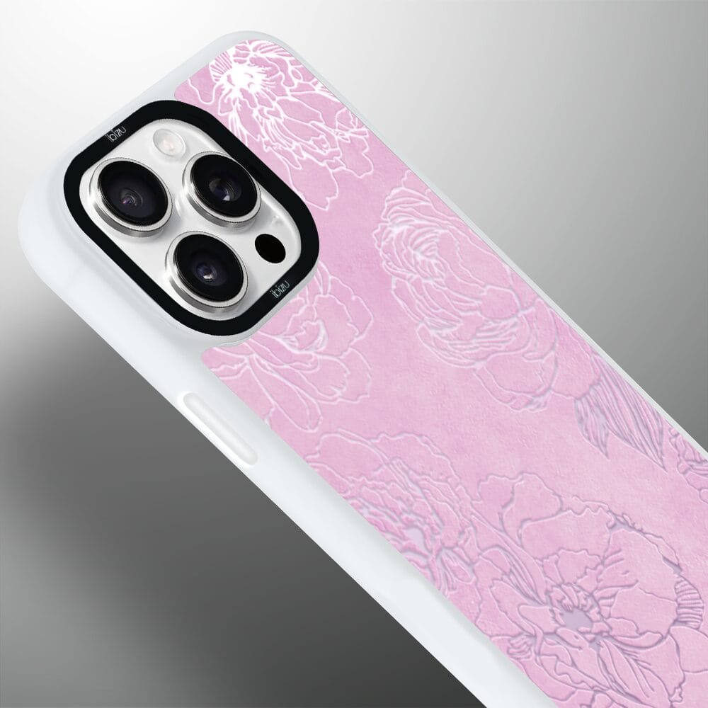 Etui do iPhone 15 Pro IBIZU DropGuard Matt z MagSafe, Relief Garden, Różowe piwonie, białe