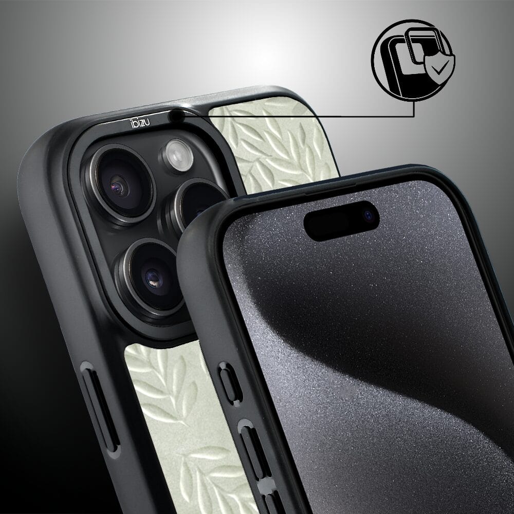 Etui do iPhone 15 Pro IBIZU DropGuard Matt z MagSafe, Relief Garden, Ślad oliwki