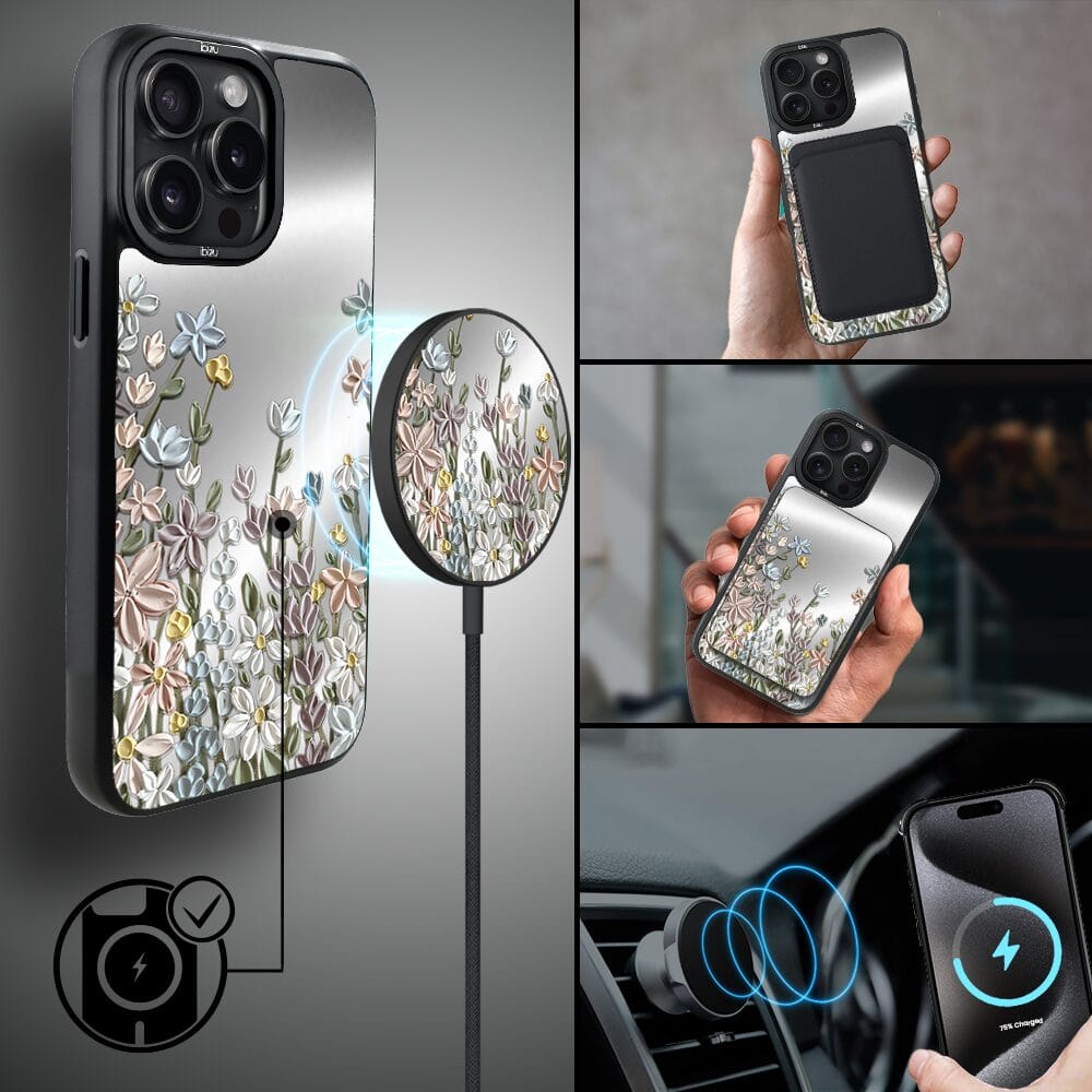 Etui do iPhone 15 Pro IBIZU DropGuard Matt z MagSafe, Relief Garden, Wiosenna łąka