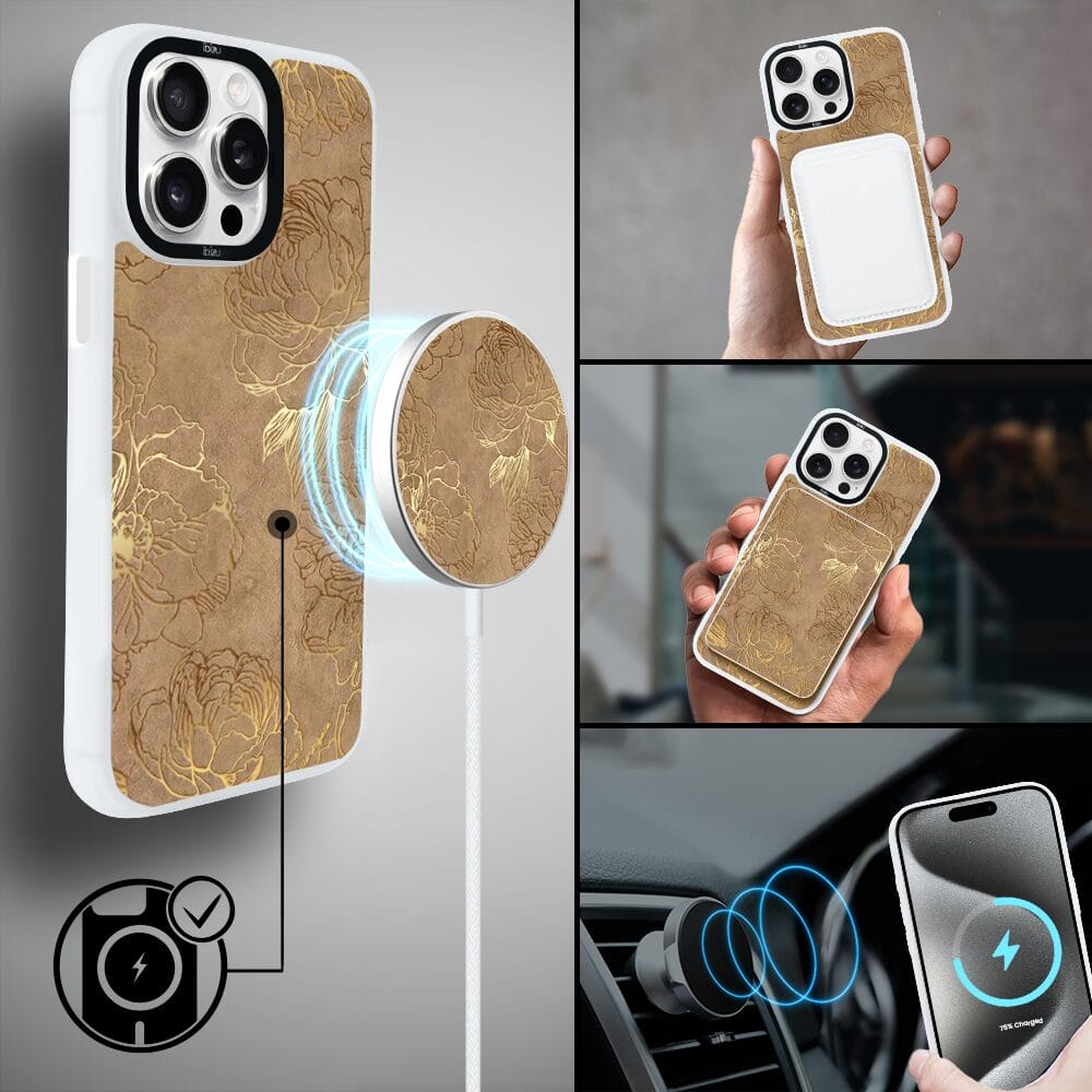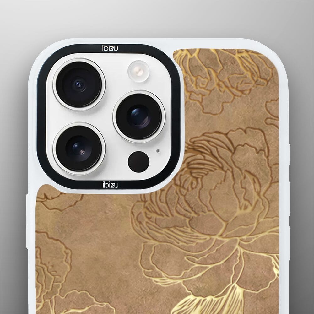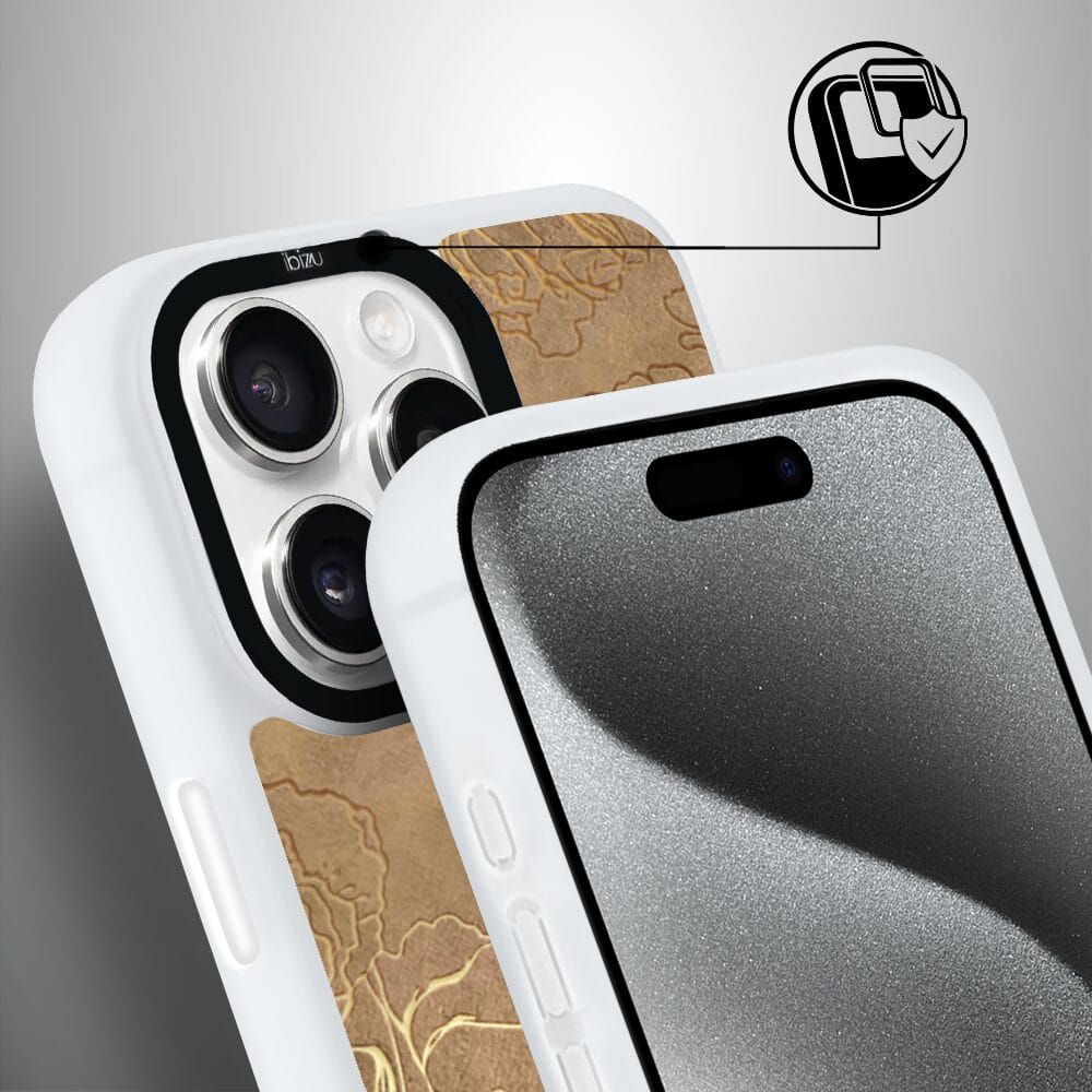 Etui do iPhone 15 Pro IBIZU DropGuard Matt z MagSafe, Relief Garden, Złote piwonie, białe