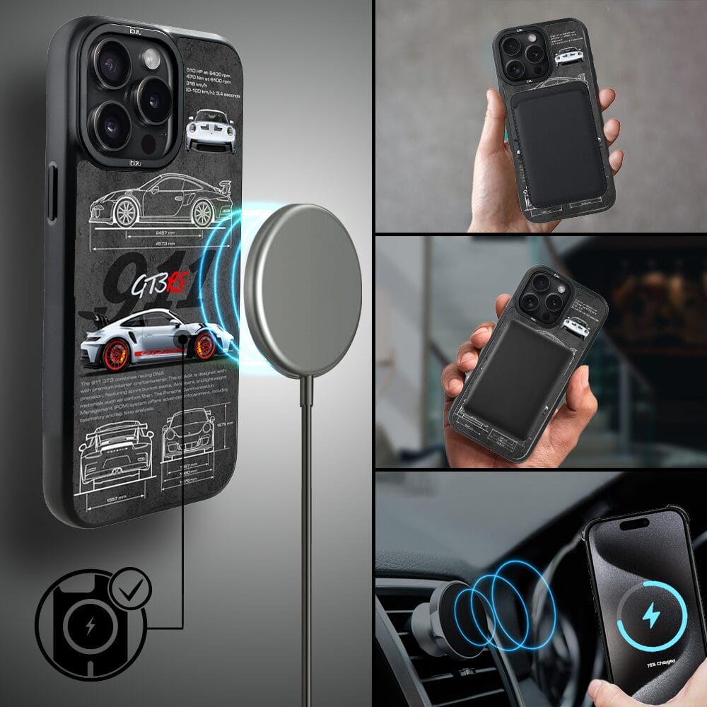 Etui do iPhone 15 Pro IBIZU DropGuard Matt z MagSafe, TechDrive, 911 GT3 RS