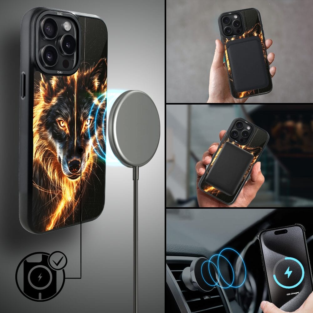 Etui do iPhone 15 Pro IBIZU DropGuard Matt z MagSafe, Wilki, Ognisty Wilk