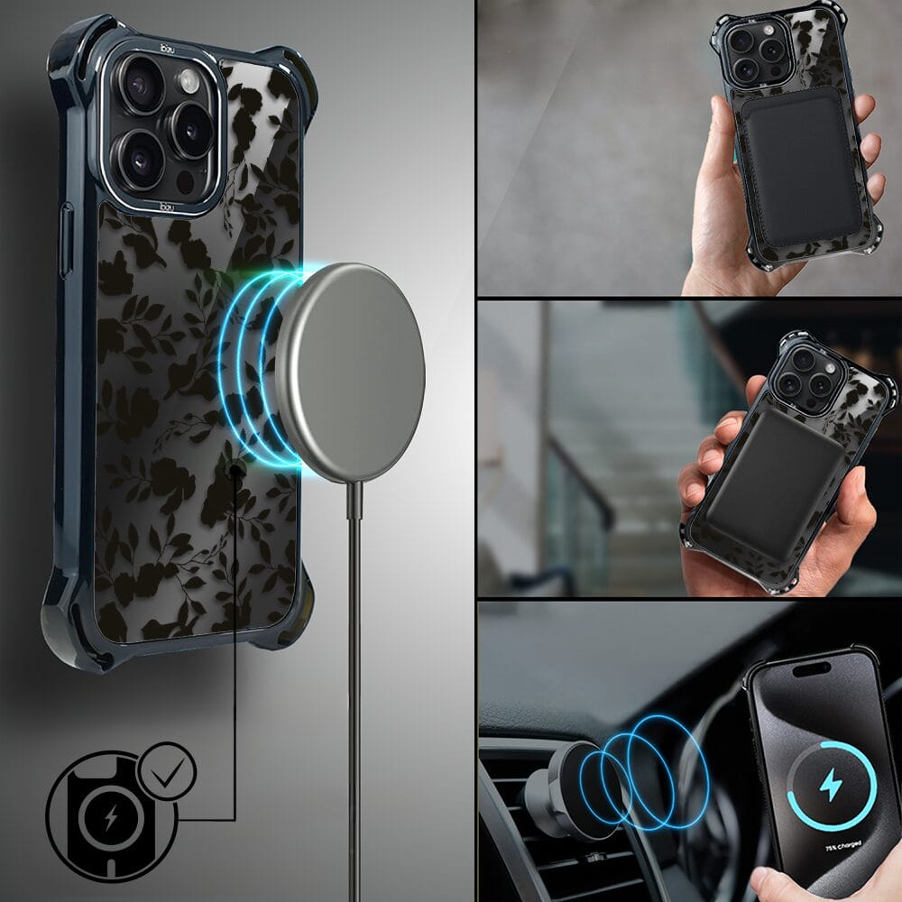 Etui do iPhone 15 Pro IBIZU DropGuard Ultra z MagSafe, Midnight, Cienie liści