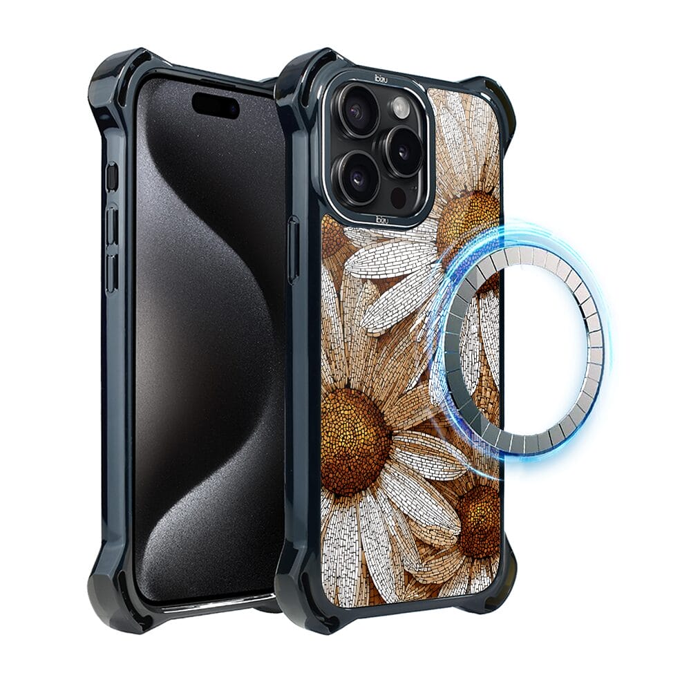Etui do iPhone 15 Pro IBIZU DropGuard Ultra z MagSafe, Modern Classics, Mozaika rumianków