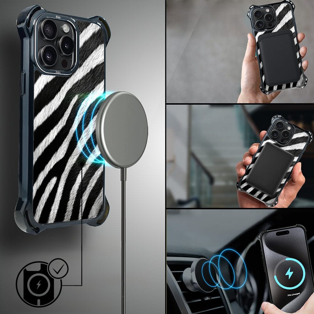 Etui do iPhone 15 Pro IBIZU DropGuard Ultra z MagSafe, Zew Natury, Zebra