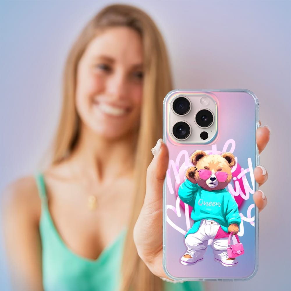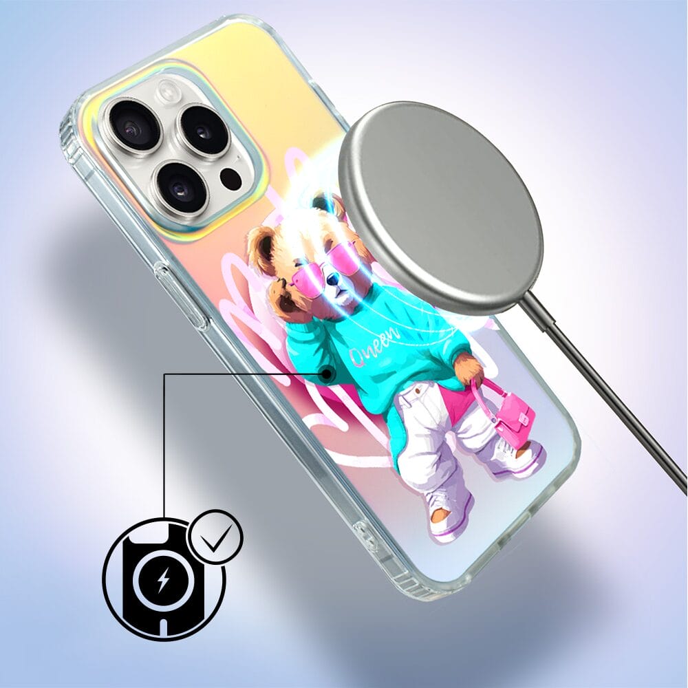Etui do iPhone 15 Pro Max IBIZU California Sunset z MagSafe, zmieniające kolor, Pink Queen, stylowy miś