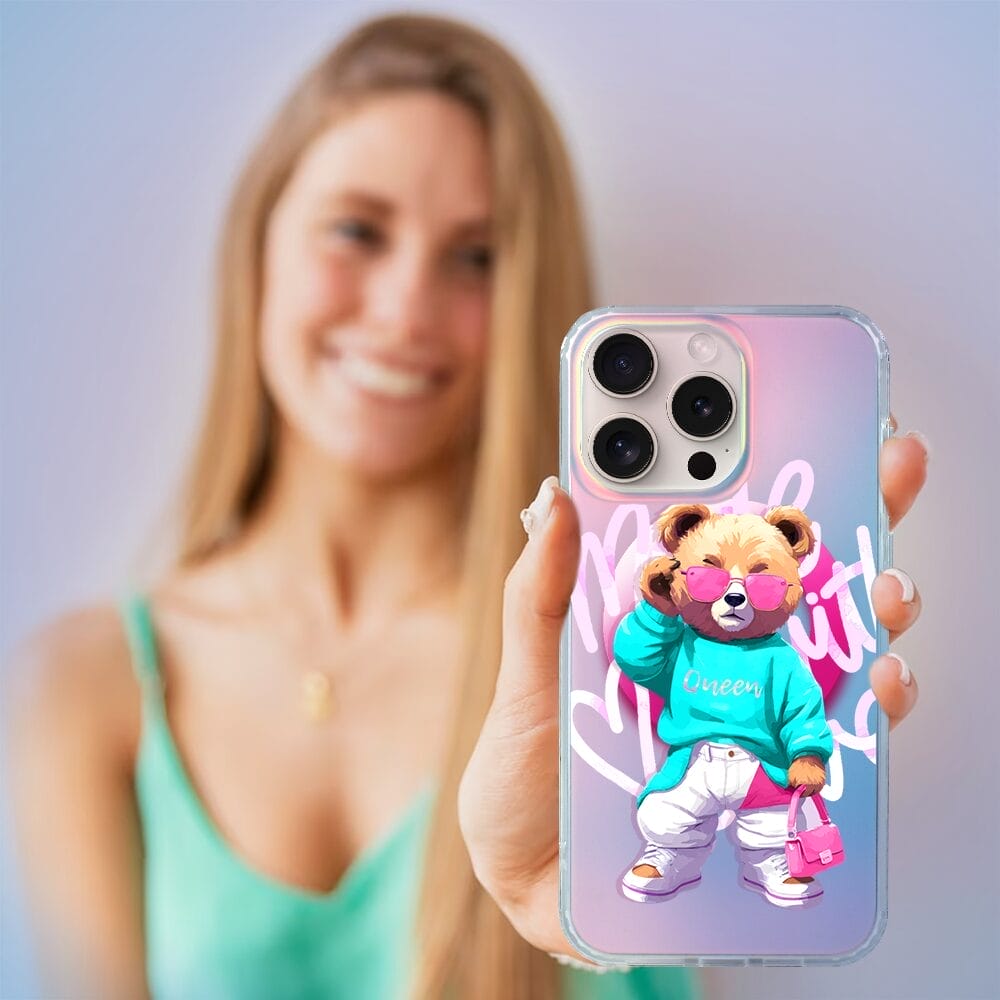 Etui do iPhone 15 Pro Max IBIZU California Sunset, zmieniające kolor, Pink Queen, stylowy miś