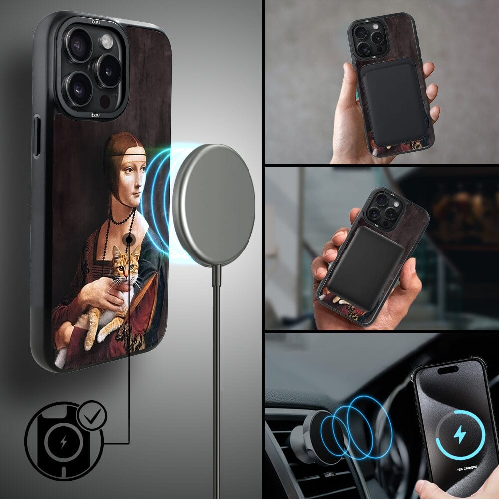 Etui do iPhone 15 Pro Max IBIZU DropGuard Matt z MagSafe, Leonardo Da Vinci, dama z kotem