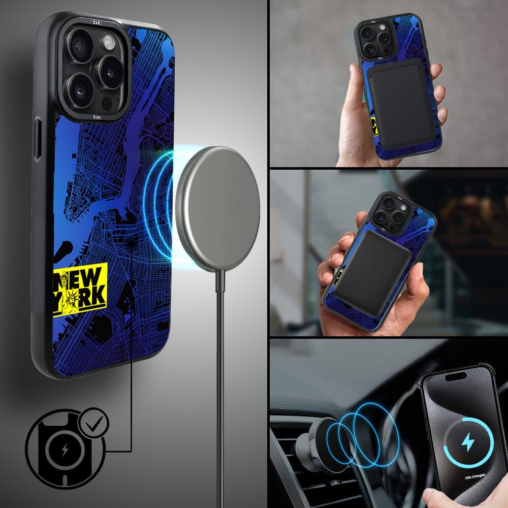 Etui do iPhone 15 Pro Max IBIZU DropGuard Matt z MagSafe, Mapy Świata, New York