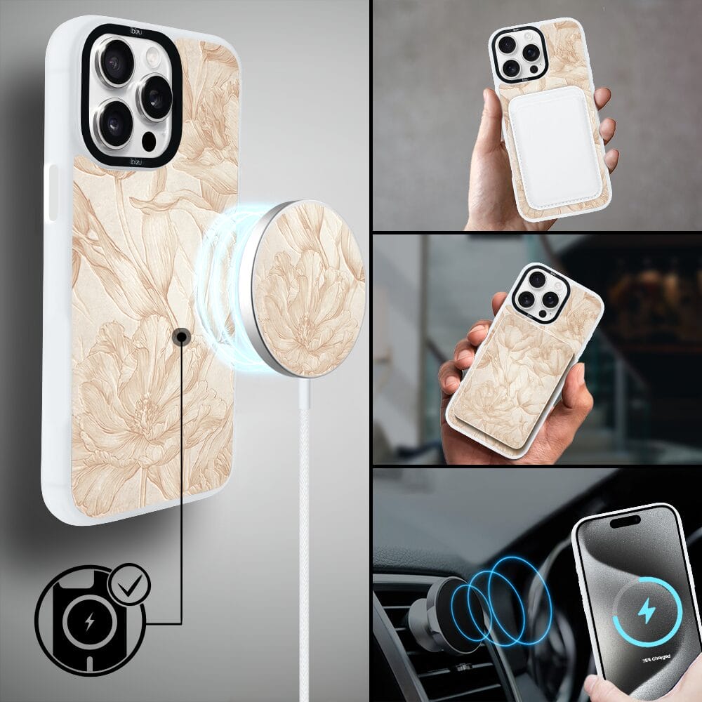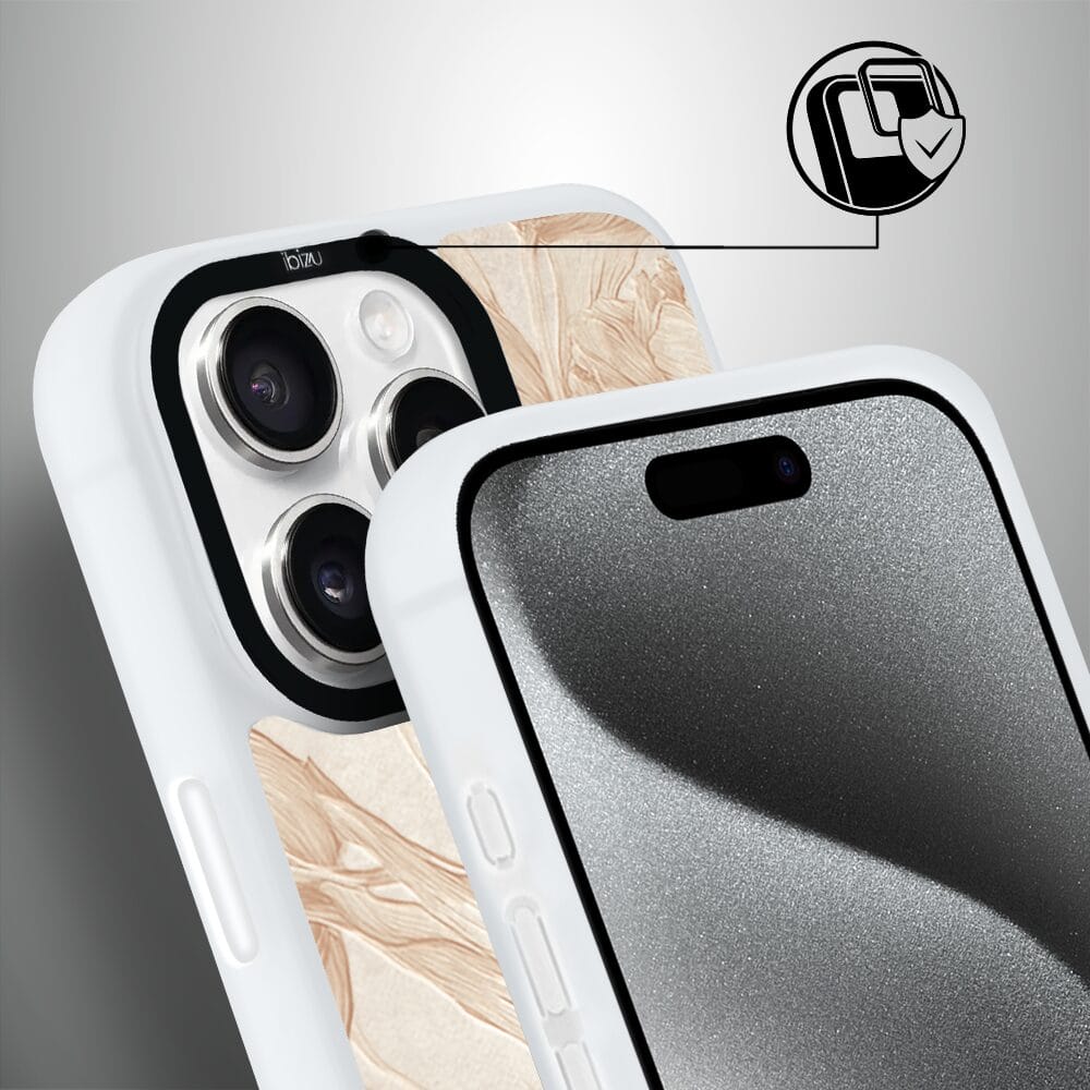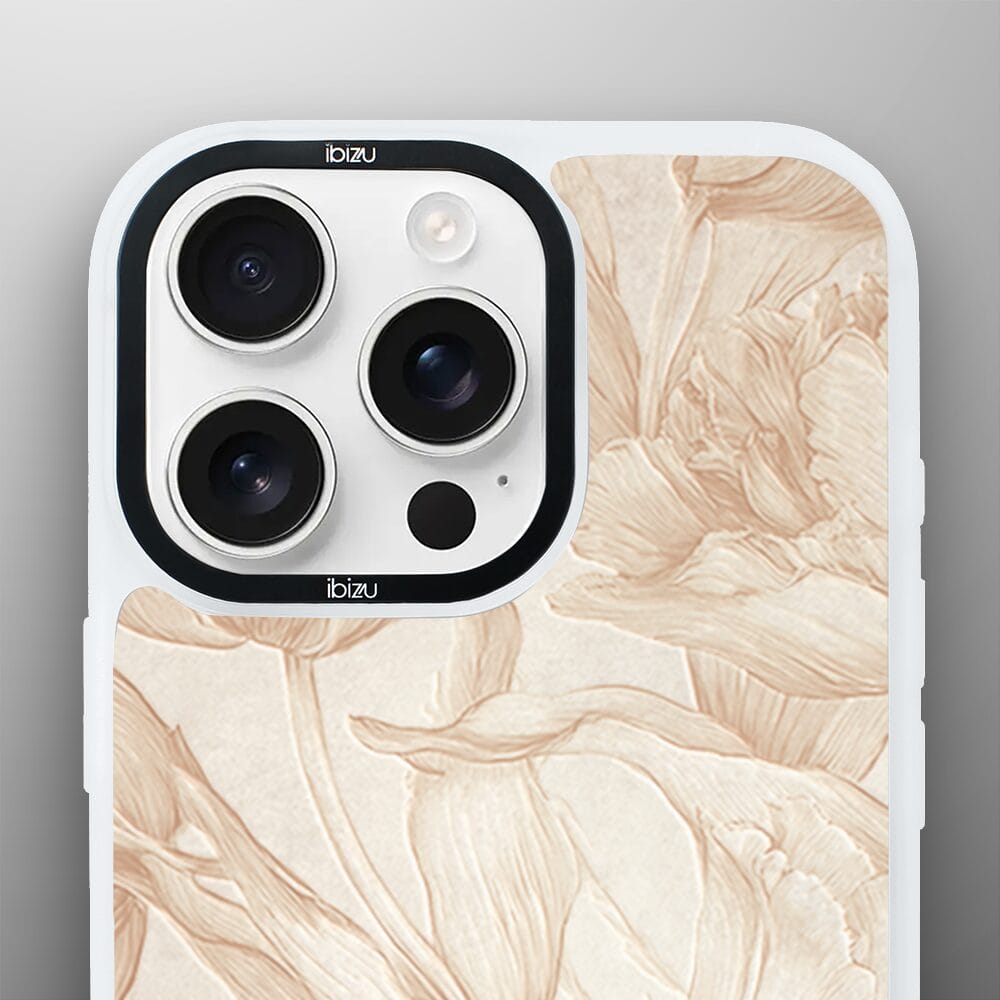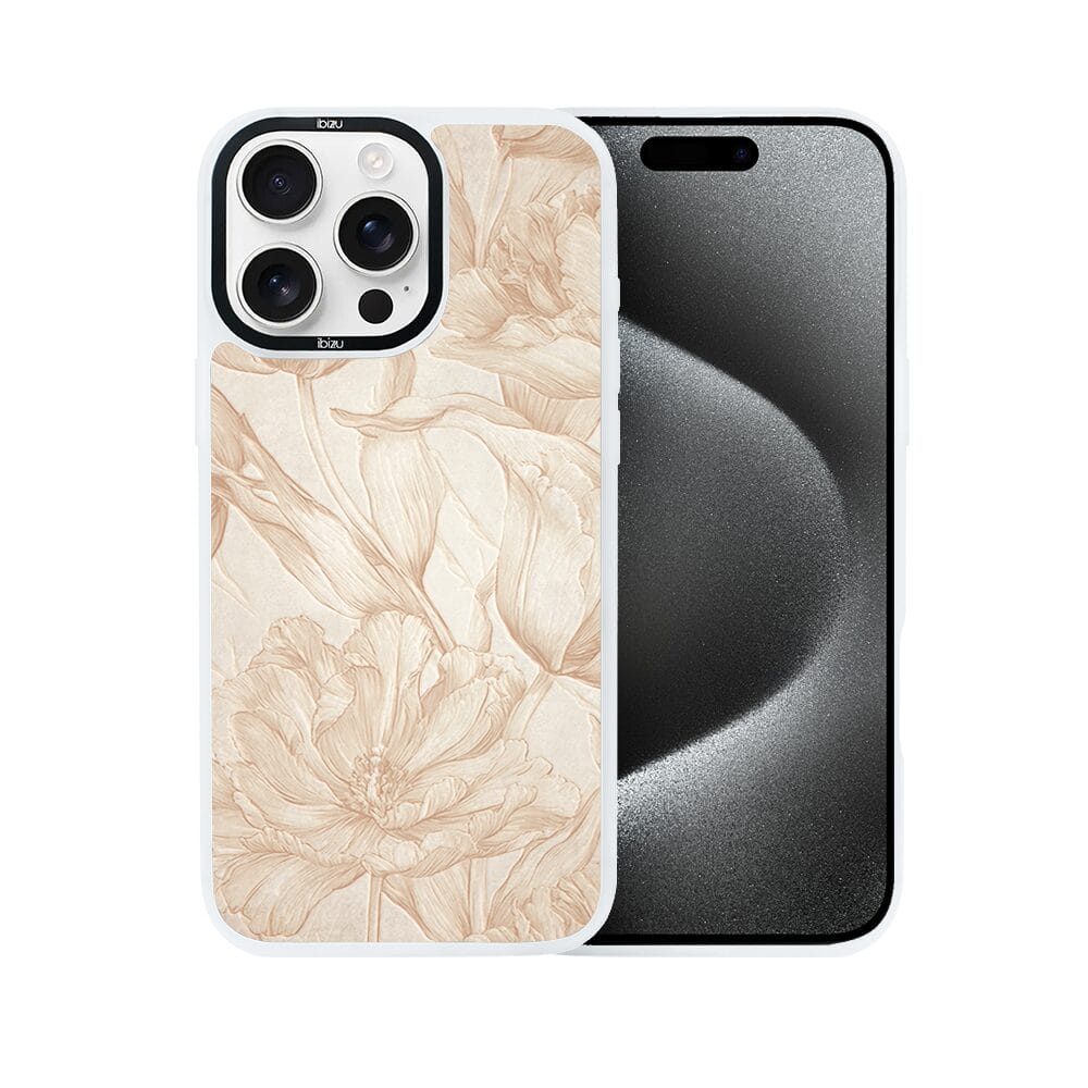 Etui do iPhone 15 Pro Max IBIZU DropGuard Matt z MagSafe, Relief Garden, Botaniczny biskwit, białe
