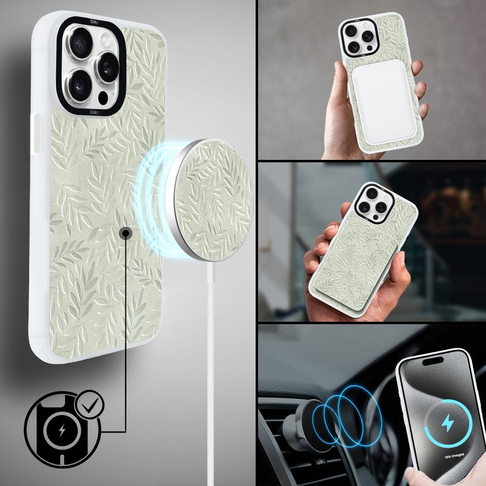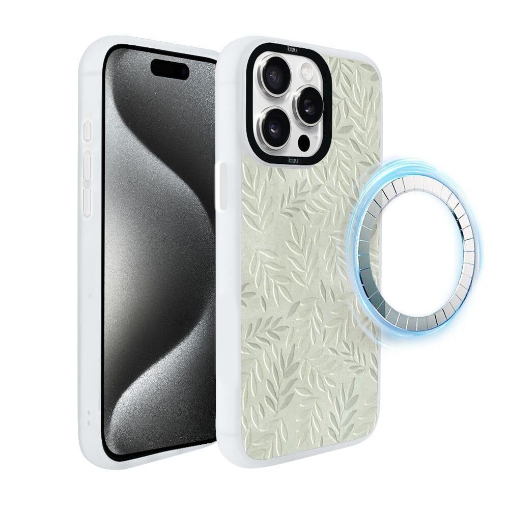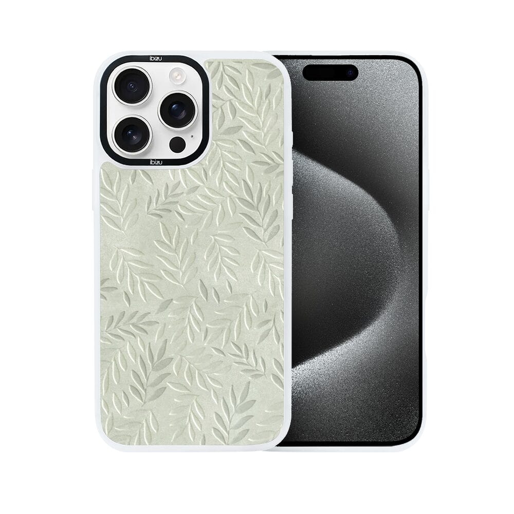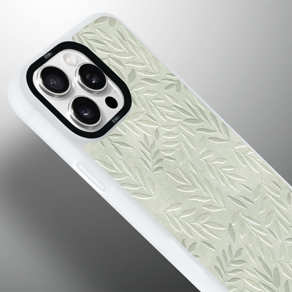 Etui do iPhone 15 Pro Max IBIZU DropGuard Matt z MagSafe, Relief Garden, Ślad oliwki, białe