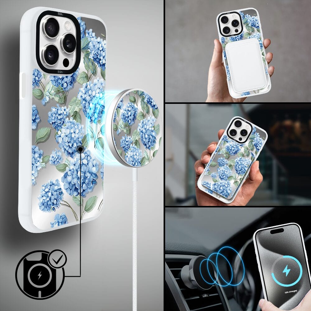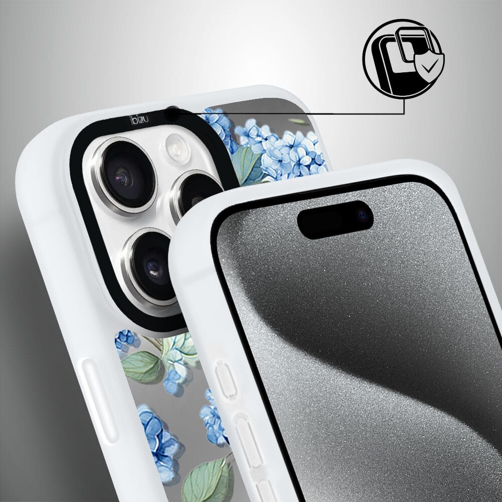 Napisz pierwszą opinię o „Etui do iPhone 15 Pro Max IBIZU DropGuard Matt z MagSafe, Relief Garden, Szafirowa hortensja, białe”