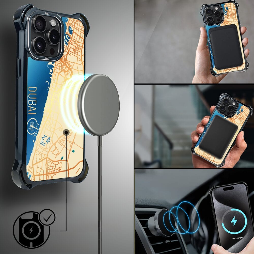 Etui do iPhone 15 Pro Max IBIZU DropGuard Ultra z MagSafe, Mapy Świata, Dubai