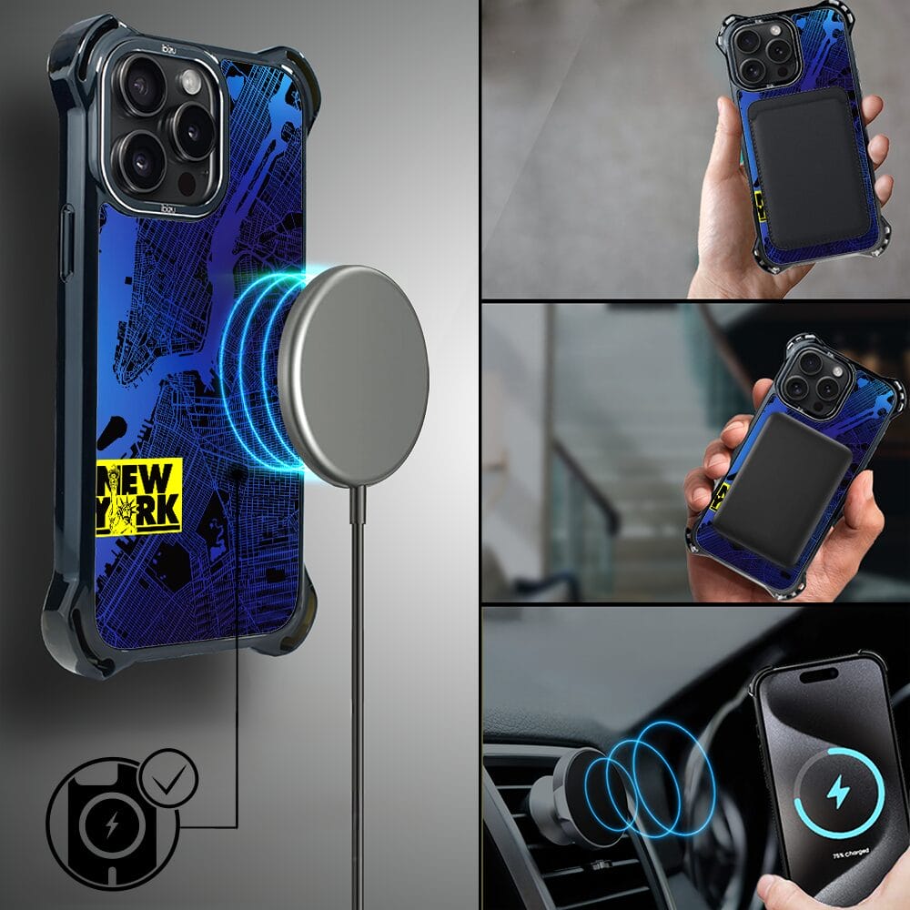 Etui do iPhone 15 Pro Max IBIZU DropGuard Ultra z MagSafe, Mapy Świata, New York