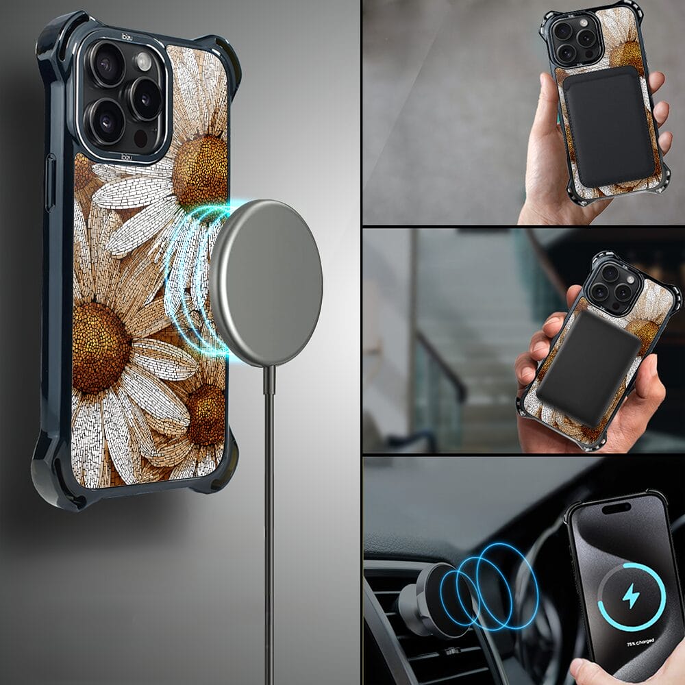 Etui do iPhone 15 Pro Max IBIZU DropGuard Ultra z MagSafe, Modern Classics, Mozaika rumianków