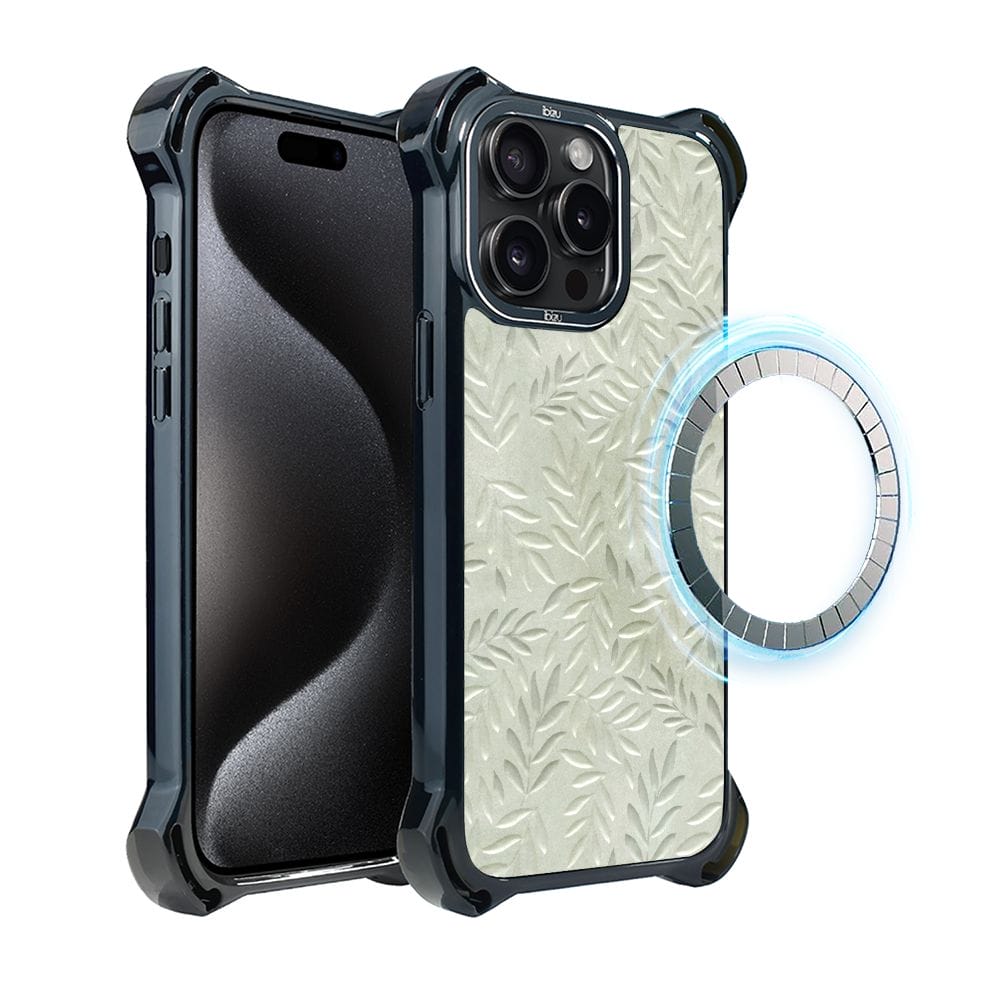 Etui do iPhone 15 Pro Max IBIZU DropGuard Ultra z MagSafe, Relief Garden, Ślad oliwki