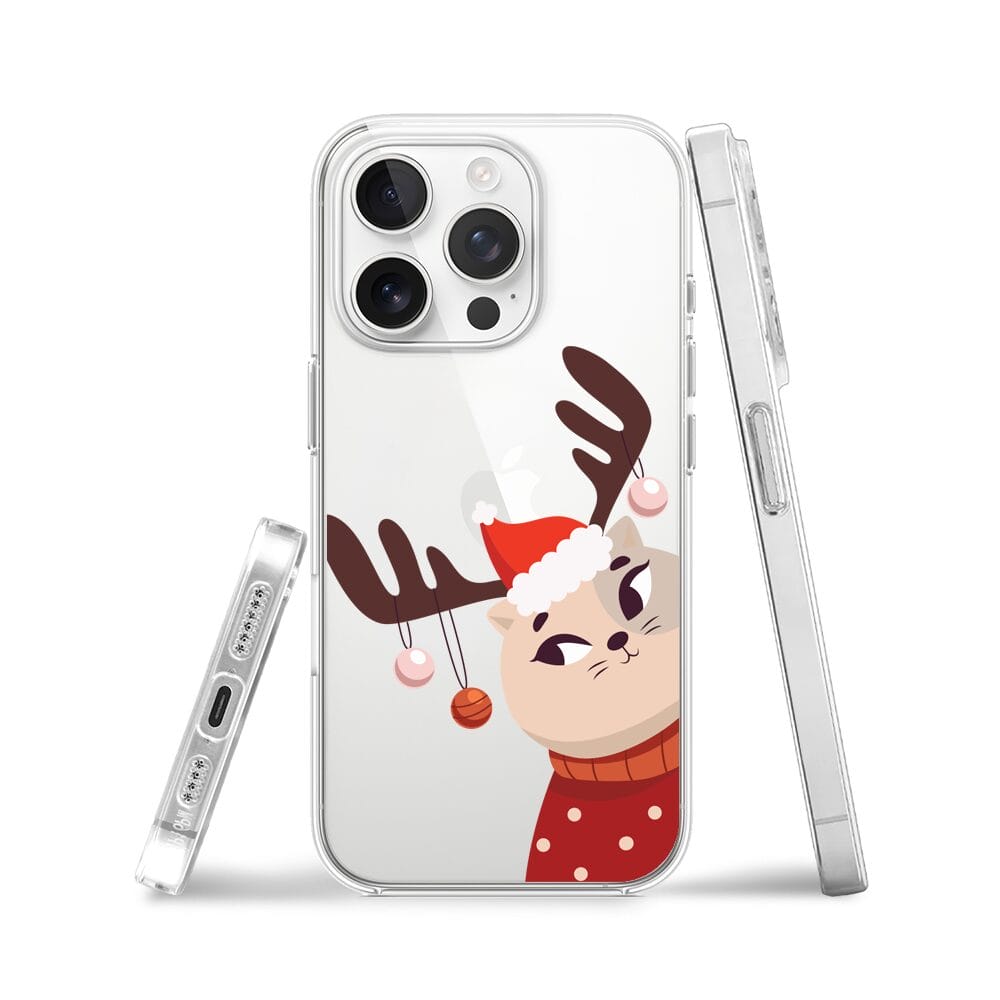 Etui do iPhone 15 Pro Max przeźroczyste, silikonowe Flexi, Kotek przebrany za reniferka